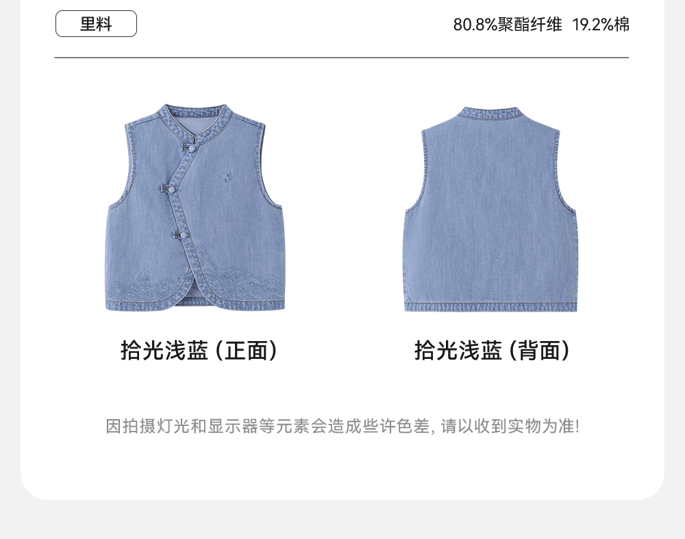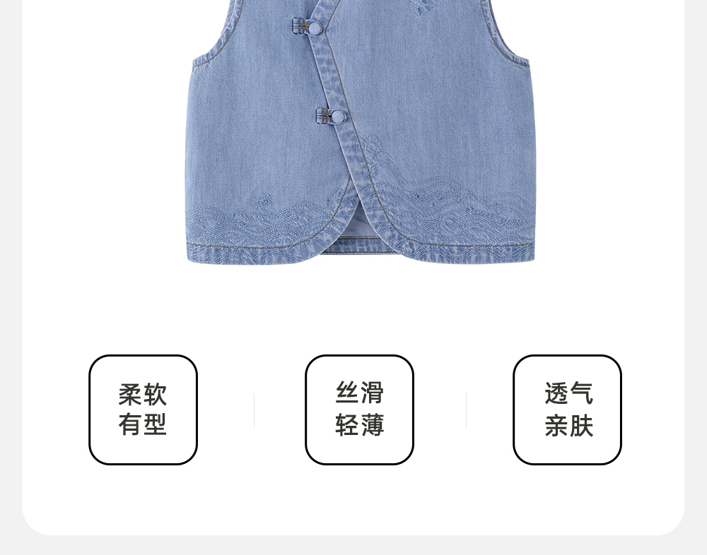 英氏儿童马甲春秋新国风男童女童牛仔外套2025新款YRWHJ1R027A