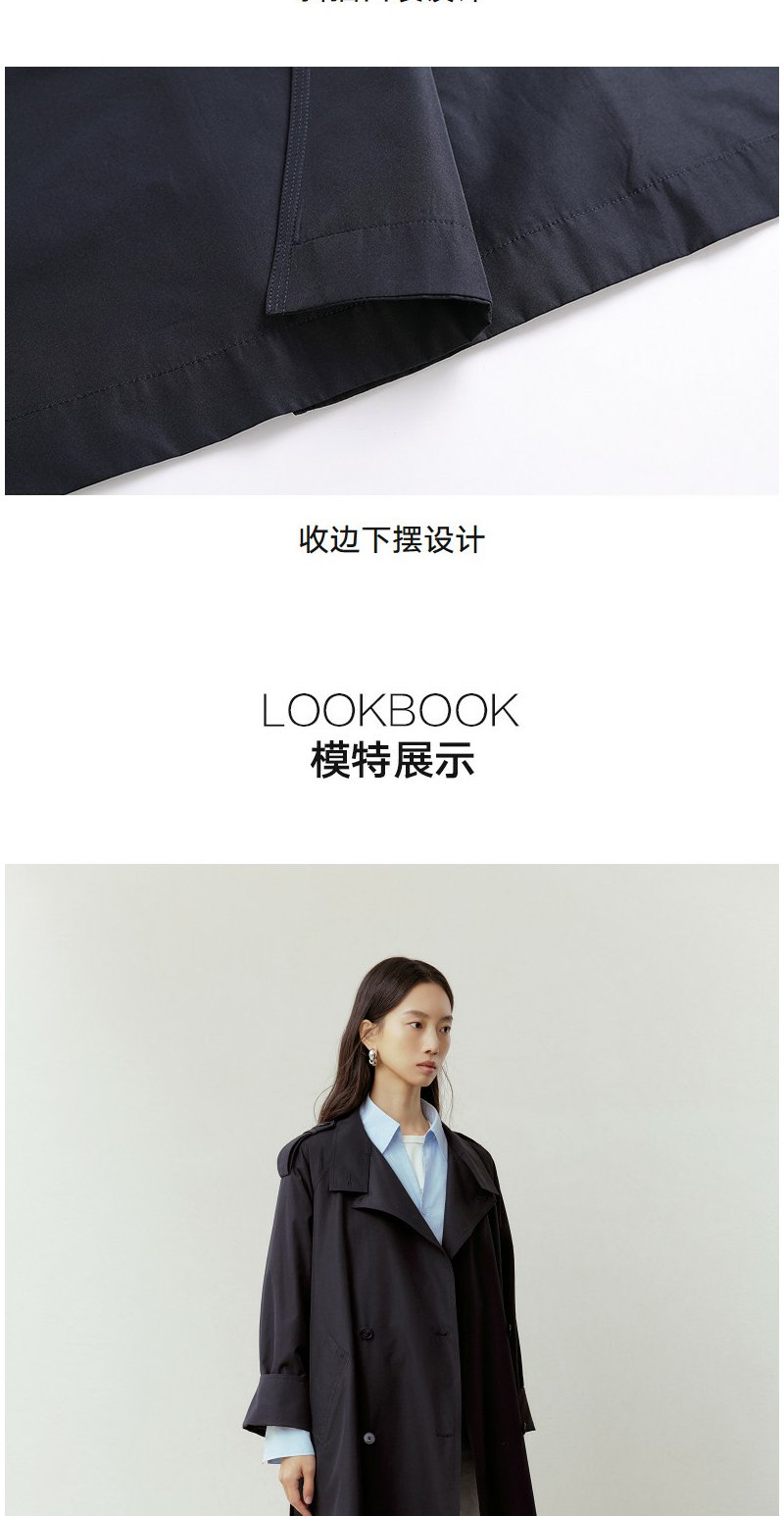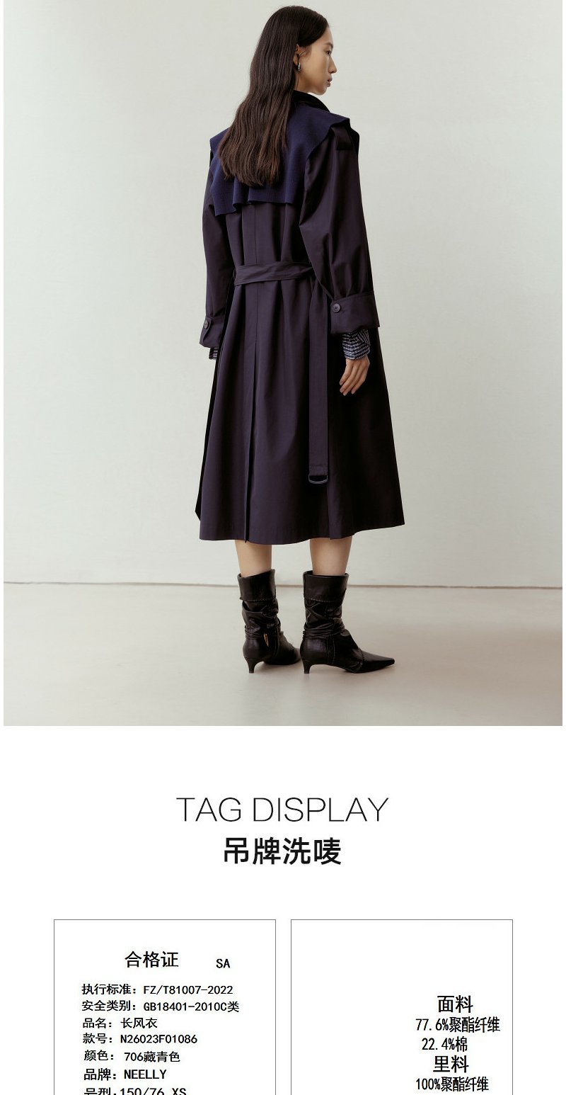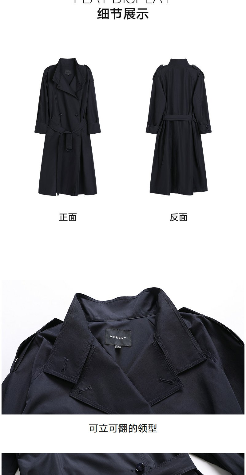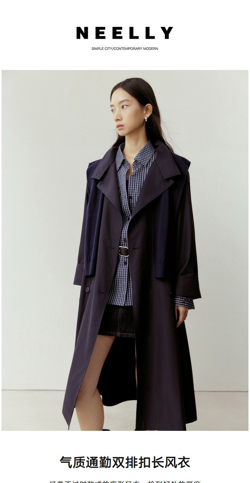 NEELLY纳俪商场同款春新款气质通勤休闲风衣女随性舒适双排扣外套N26023F01086