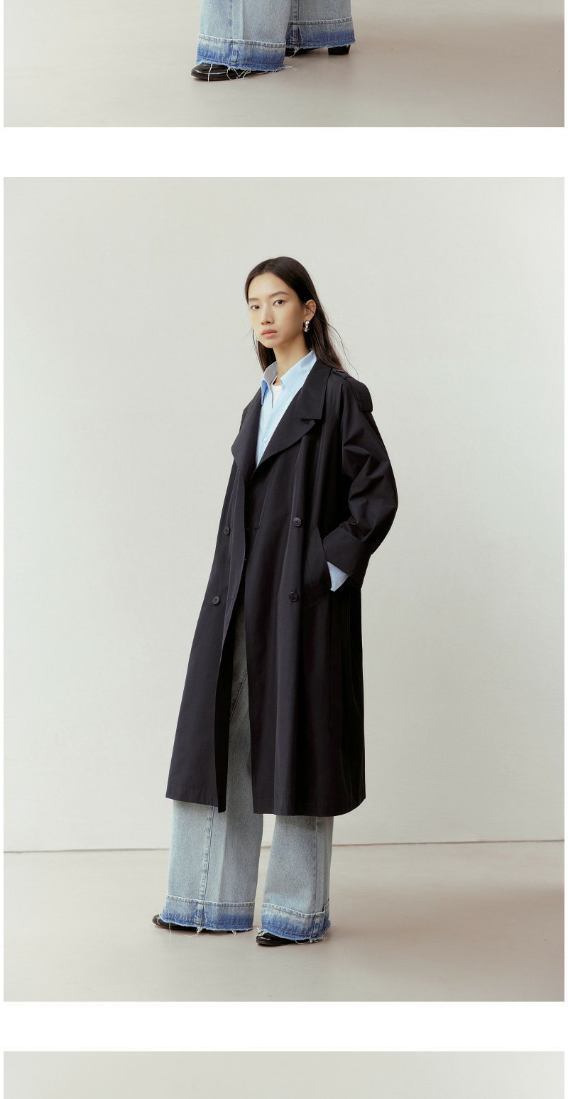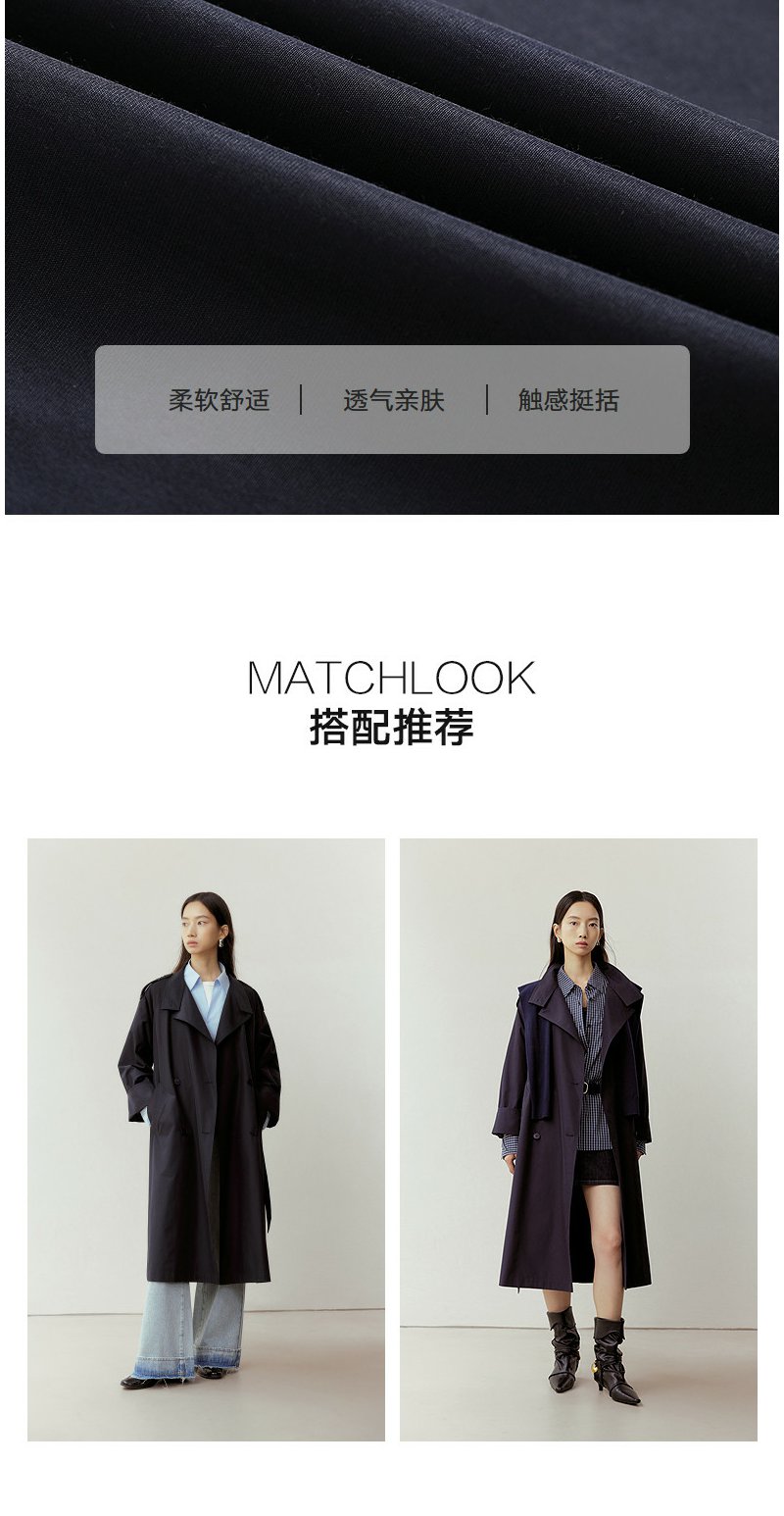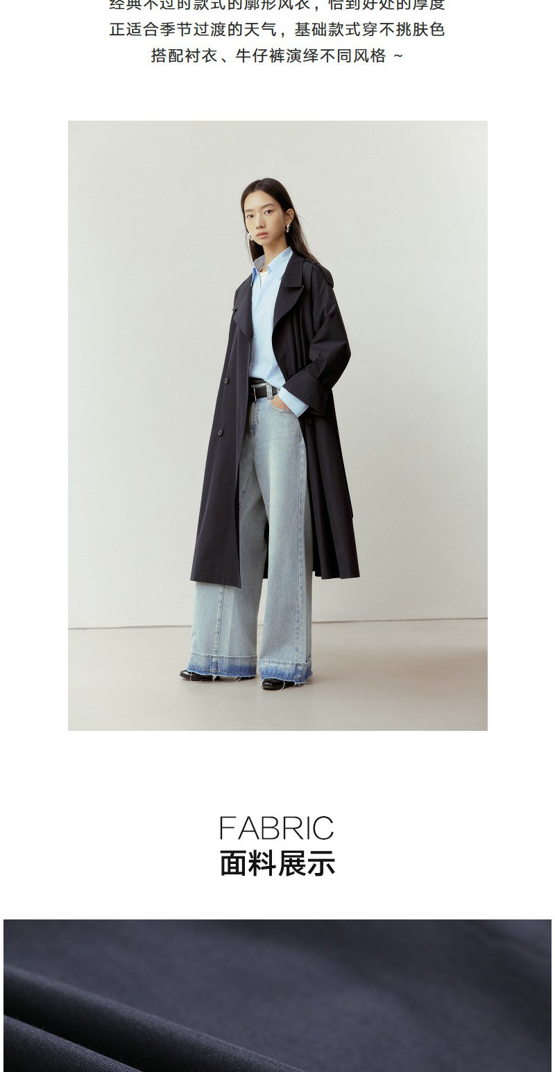 NEELLY纳俪商场同款春新款气质通勤休闲风衣女随性舒适双排扣外套N26023F01086