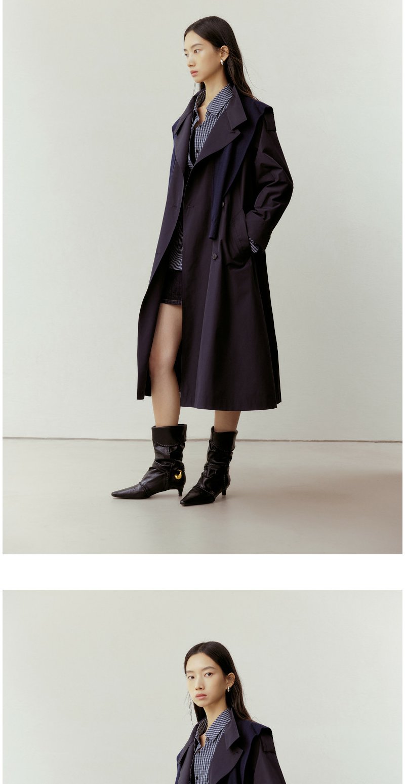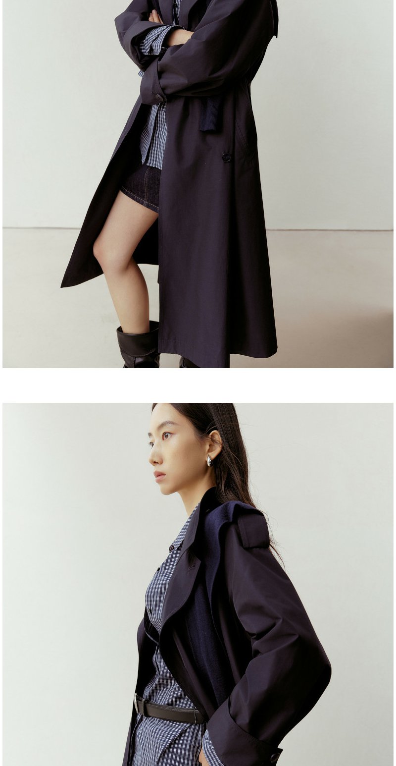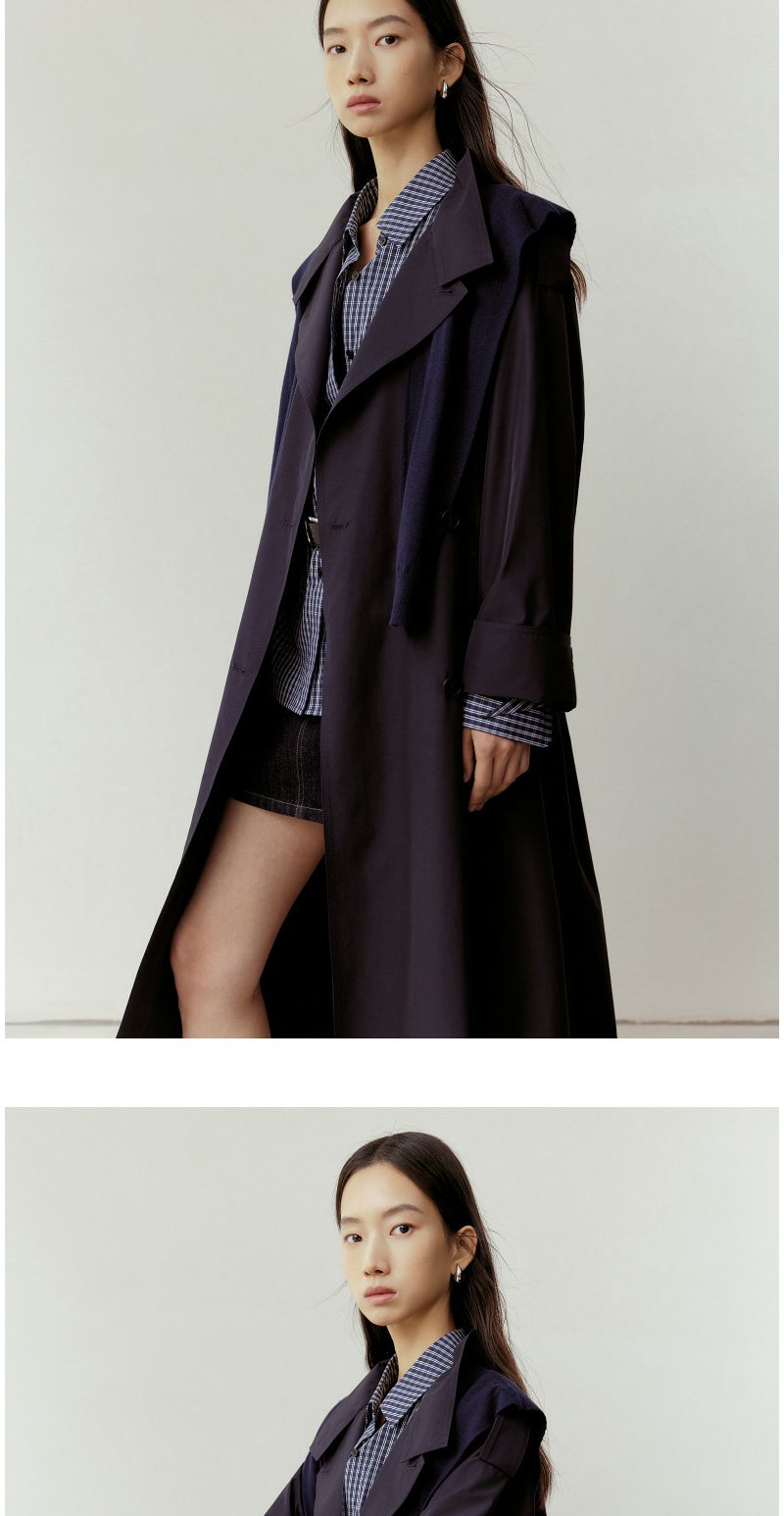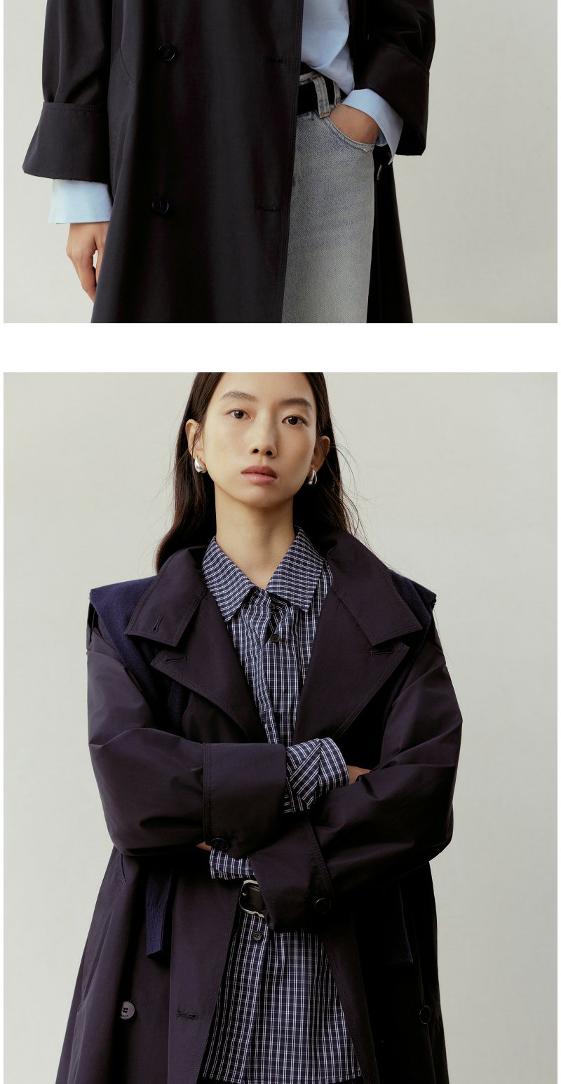 NEELLY纳俪商场同款春新款气质通勤休闲风衣女随性舒适双排扣外套N26023F01086