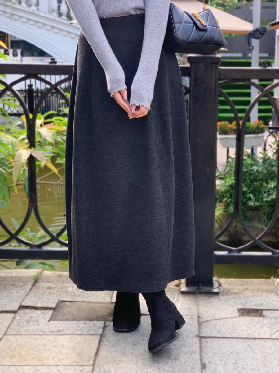 【百图lulu定制】【醋酸羊毛半裙】六片式裁剪 松紧内折腰头 极简风 藏肚子 加绒 精致半身裙