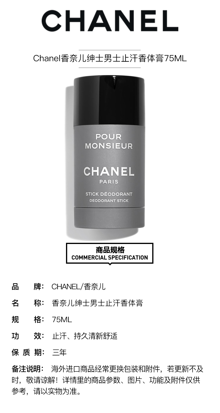 Chanel香奈儿绅士男士止汗香体膏75ML