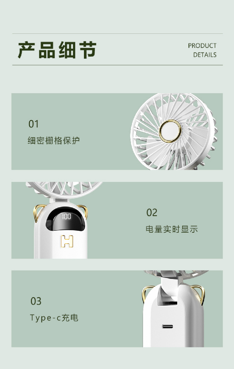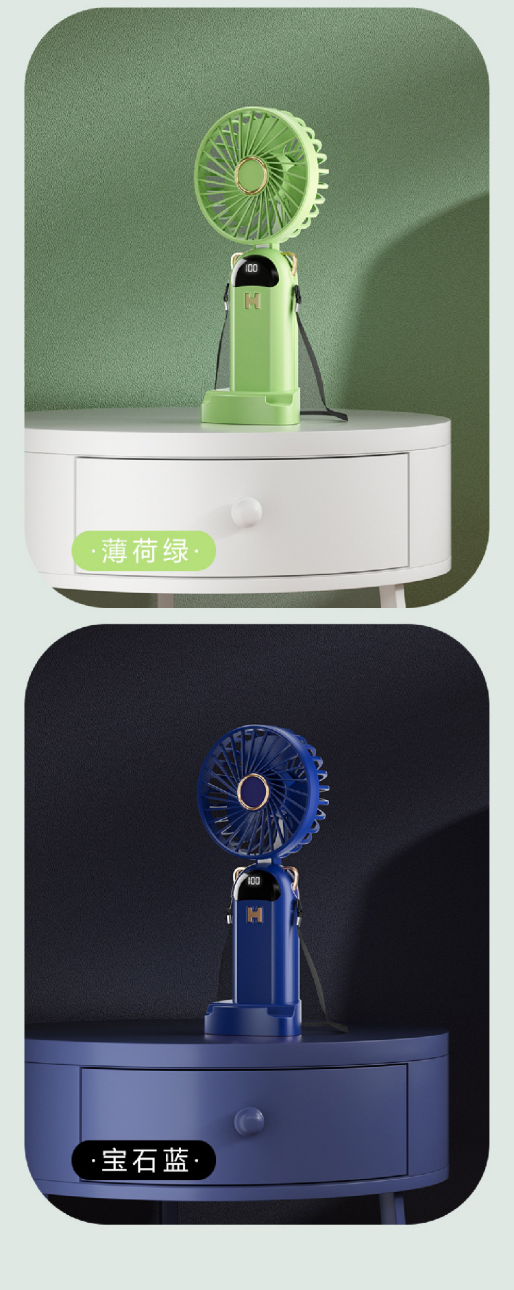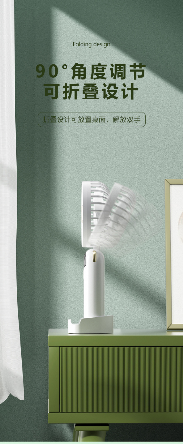 【折叠数显风扇】新款桌面手持静音风扇 挂脖户外USB充电小风扇