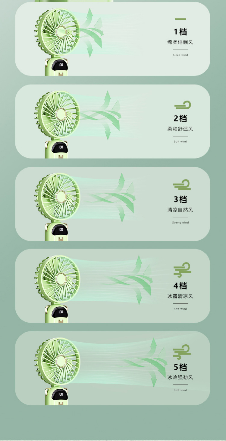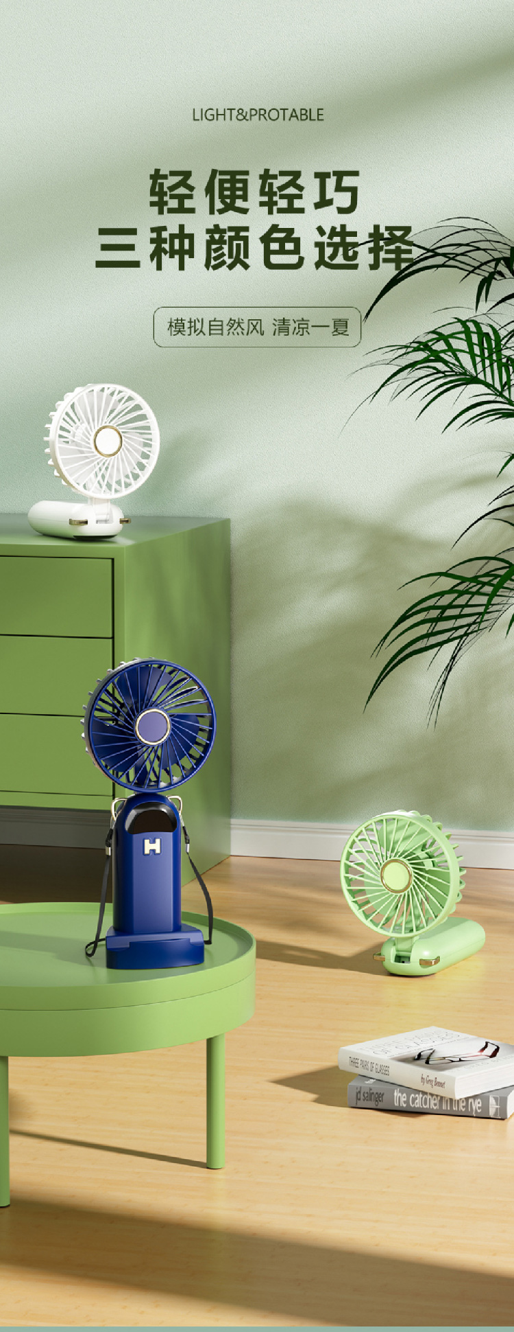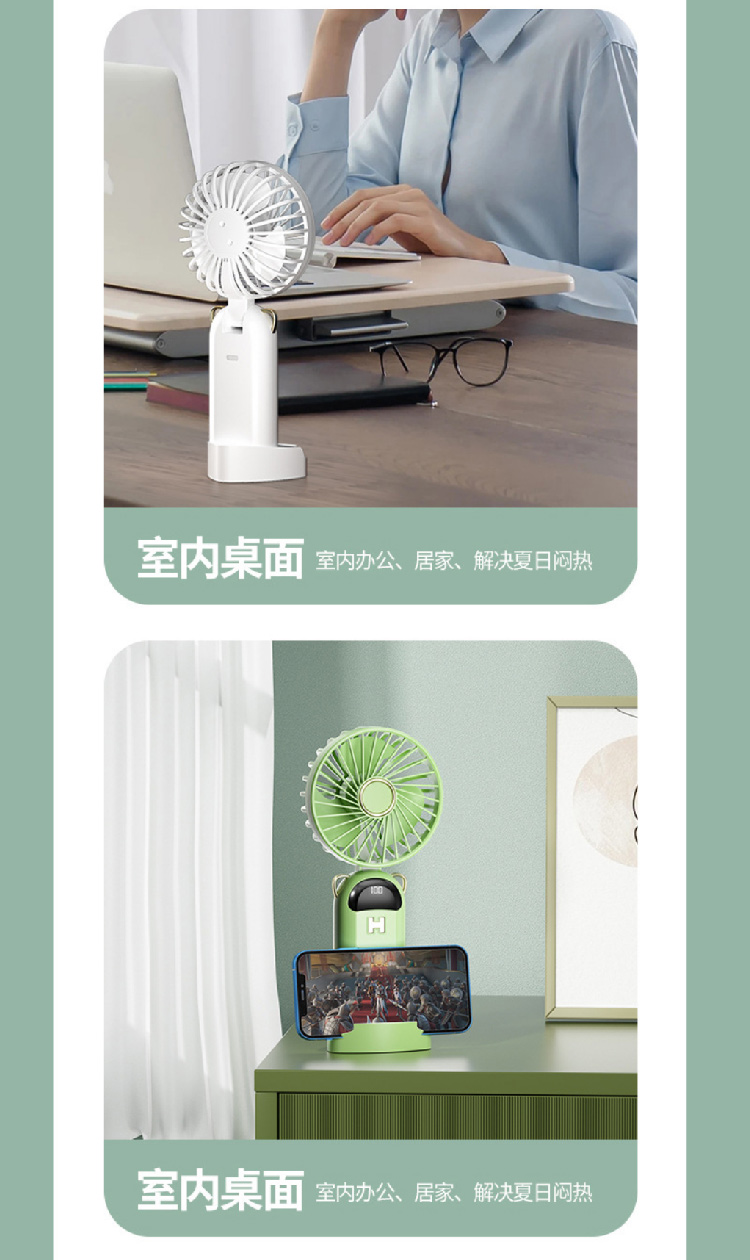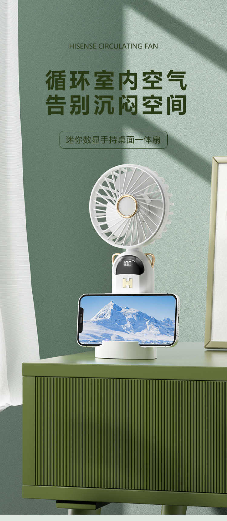 【折叠数显风扇】新款桌面手持静音风扇 挂脖户外USB充电小风扇