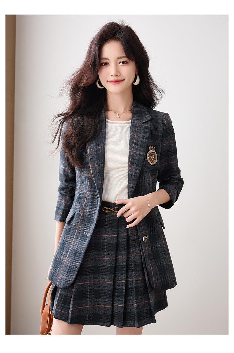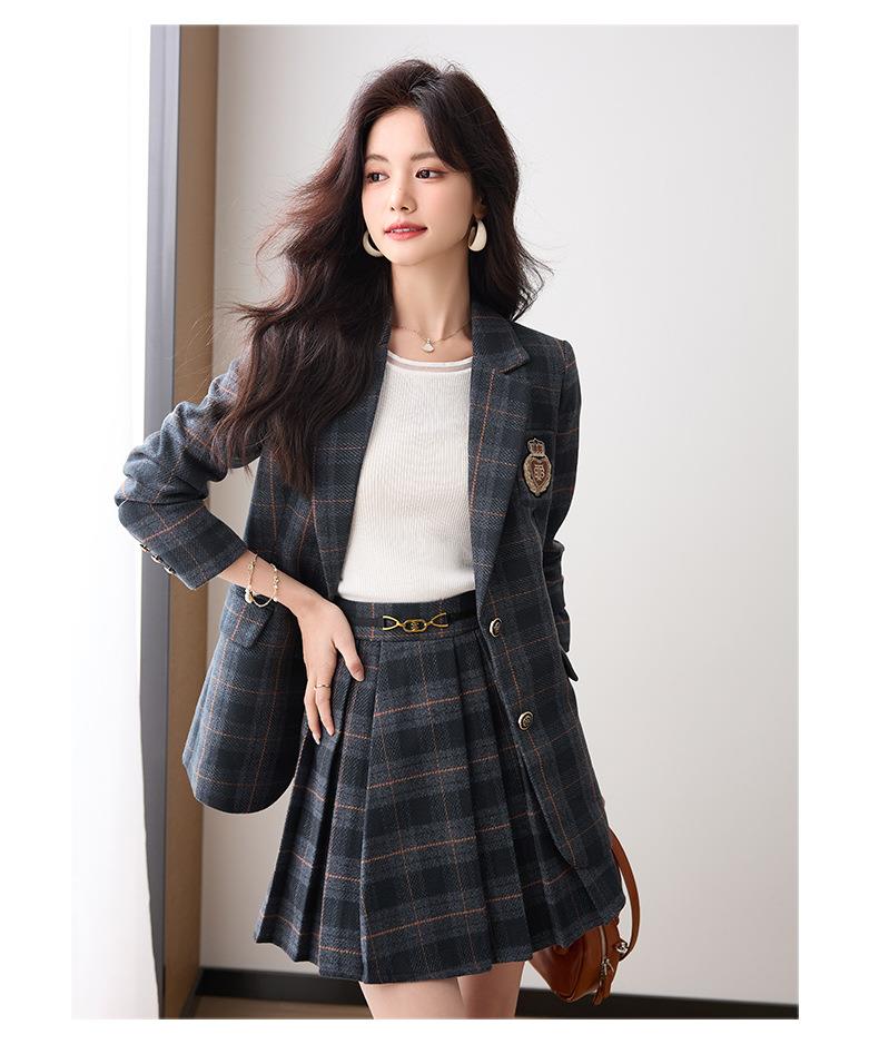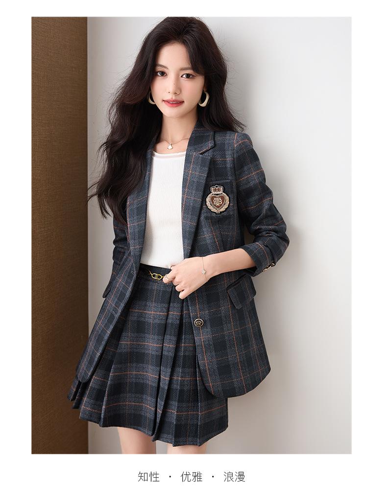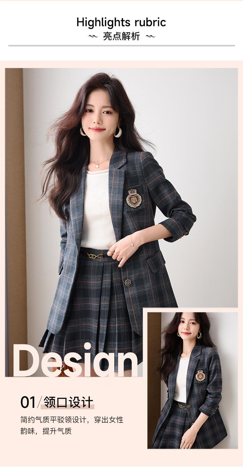 学院风小西装外套女秋季高级感格子JK制服气质小个子休闲短裙套装