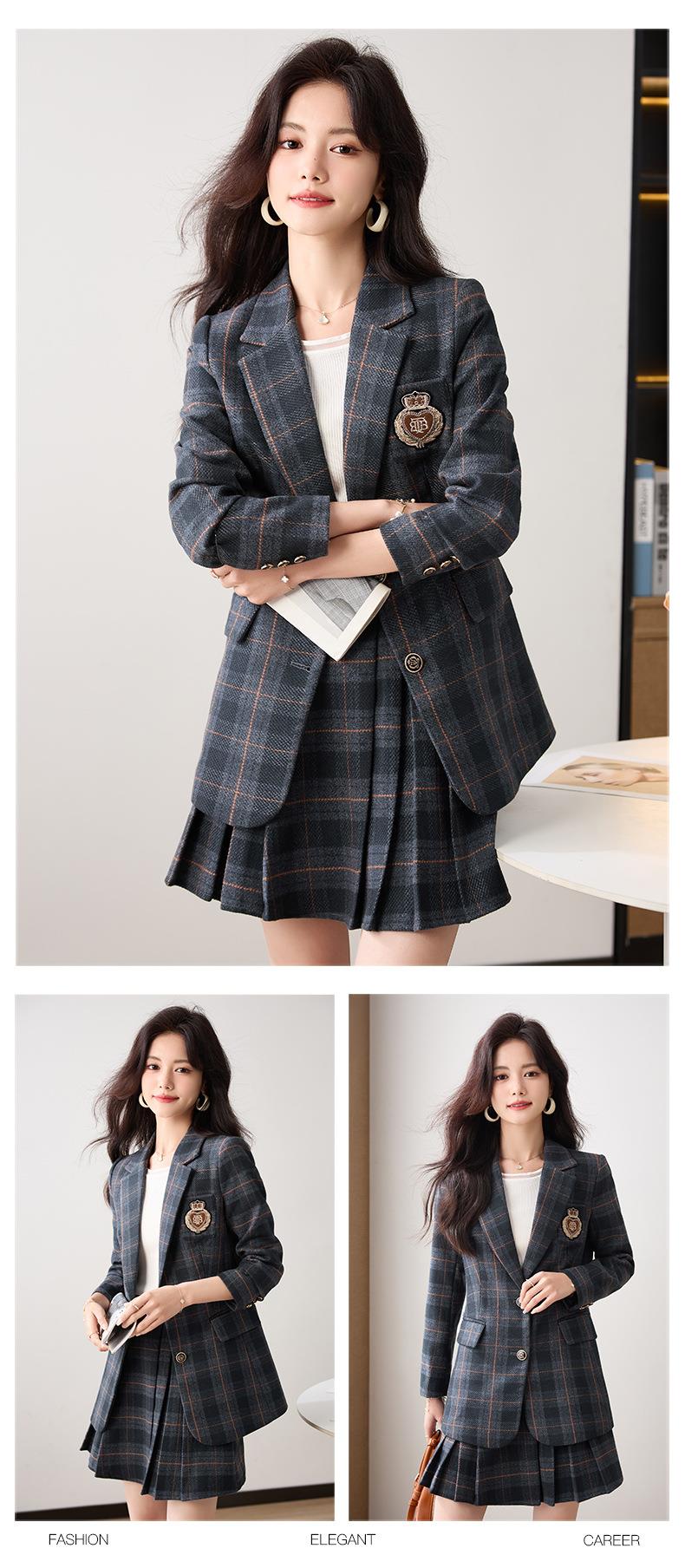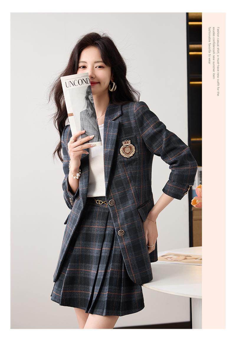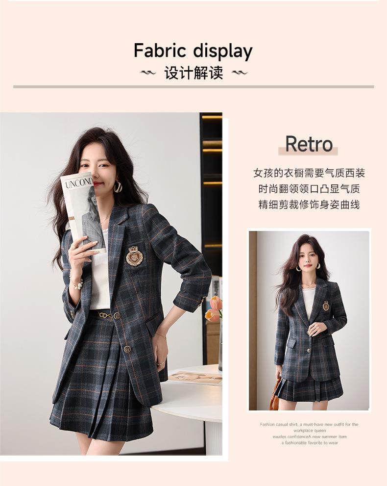 学院风小西装外套女秋季高级感格子JK制服气质小个子休闲短裙套装