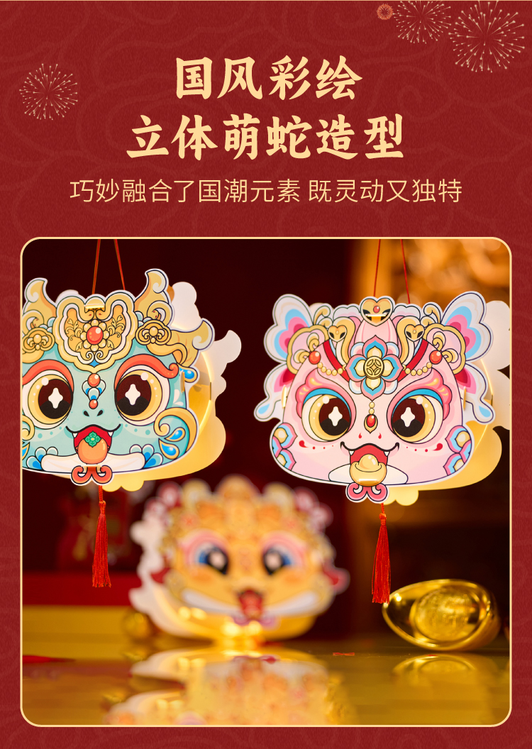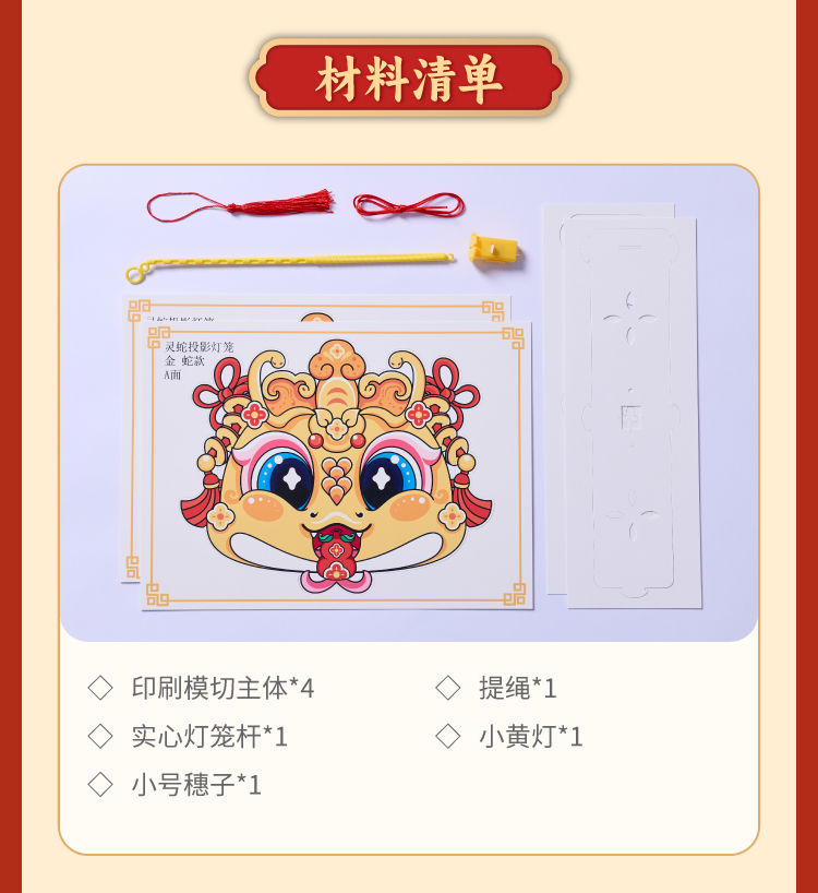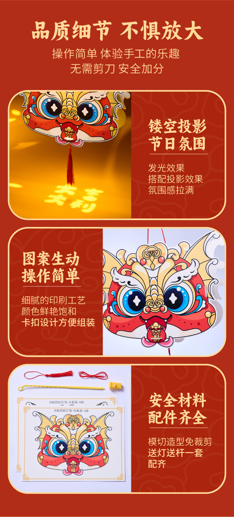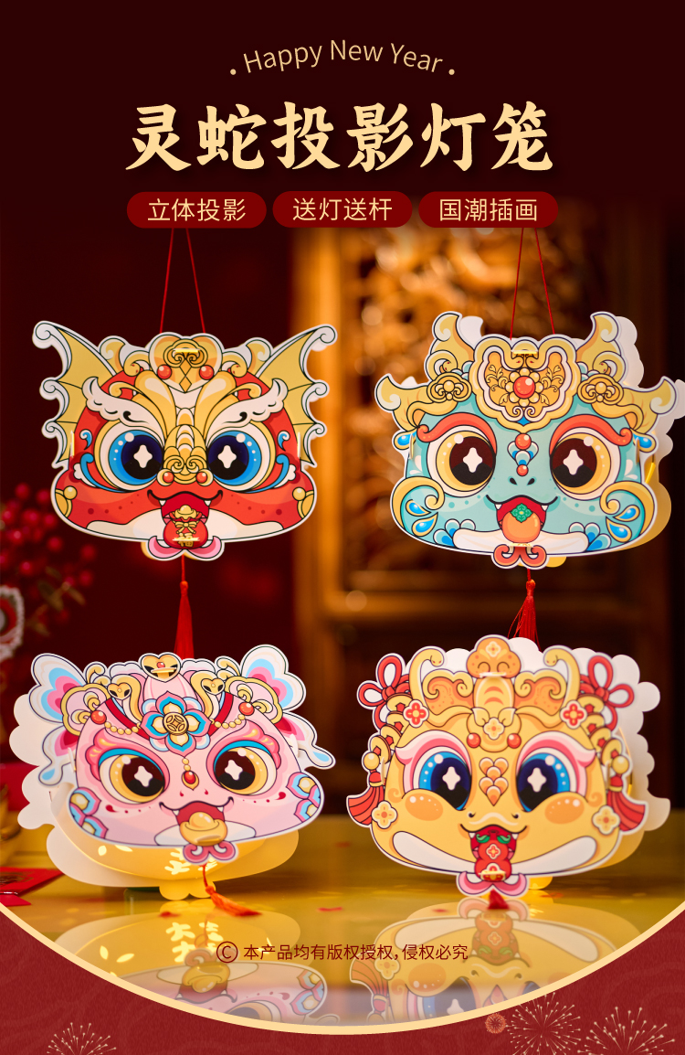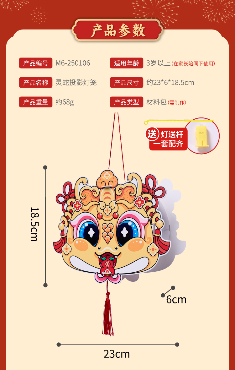 【MEIKE新年】2025蛇年新年春节元旦灵蛇投影灯笼手工diy儿童制作材料包幼儿园
