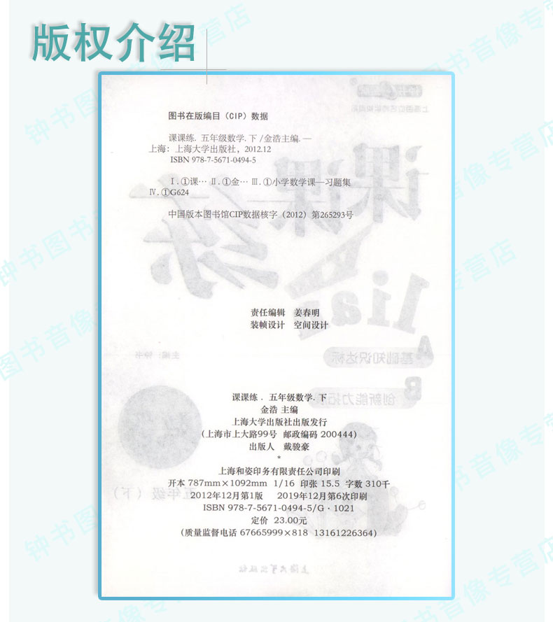 钟书金牌 课课练 数学 5年级下册/五年级第二学期 新课标全新修订版 上海小学教材教辅同步课后训练作业练习册 小学教辅