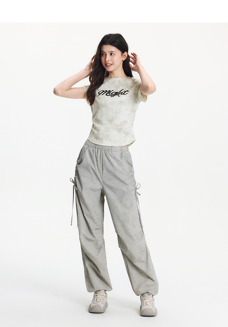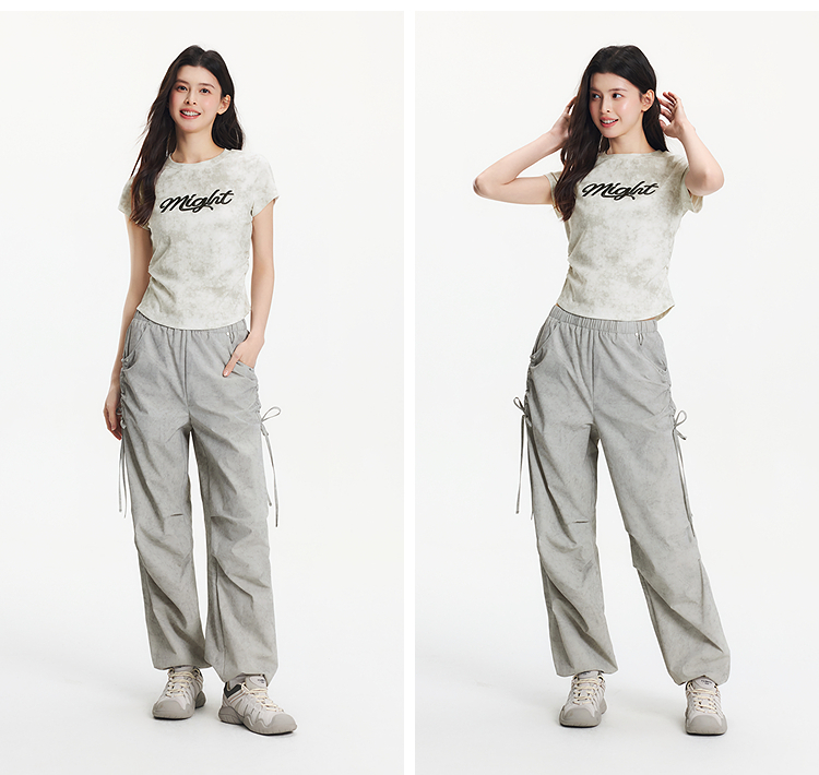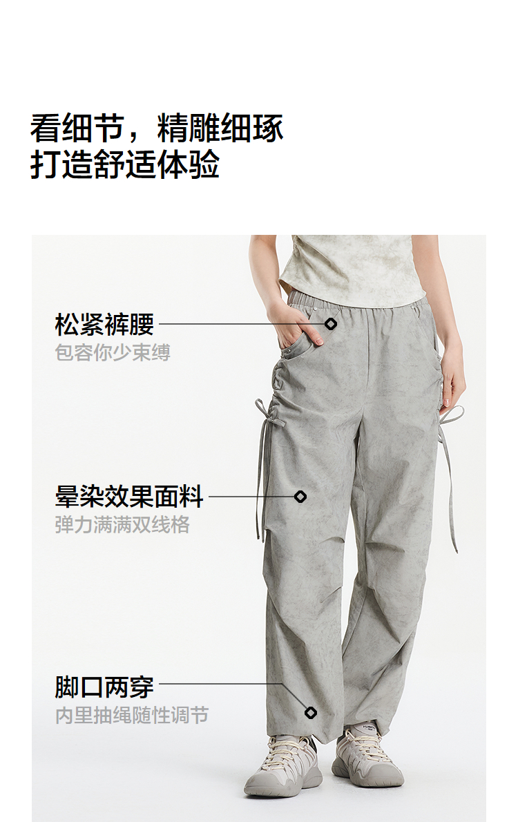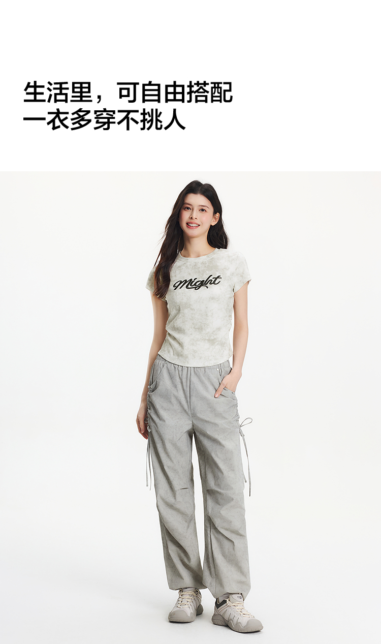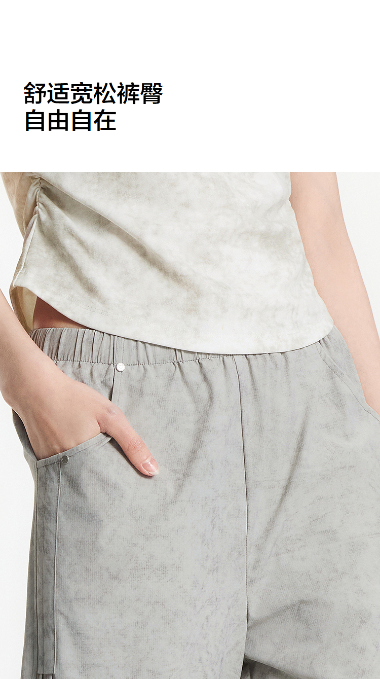[商场同款]森马休闲裤女晕染工装裤高街2025夏新款肌理阔腿裤小众