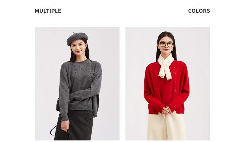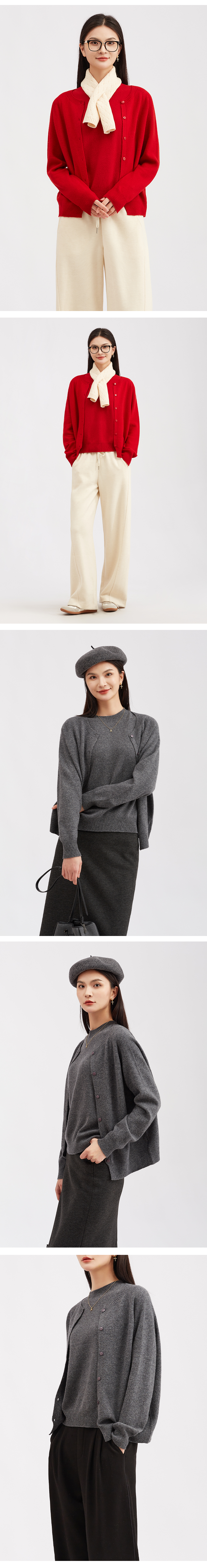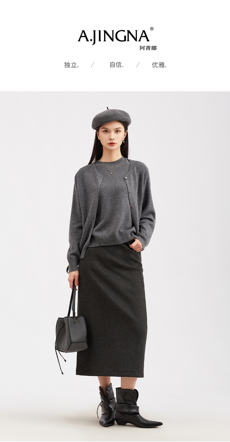 【细腻针织】阿菁娜新款绵羊毛针织开衫微廓形圆领细腻针织通勤百搭外套F30D318015