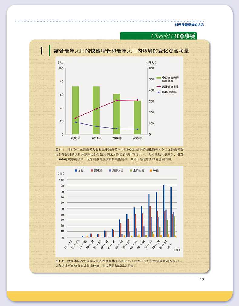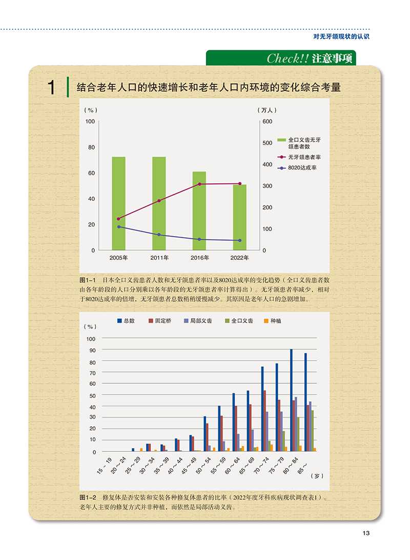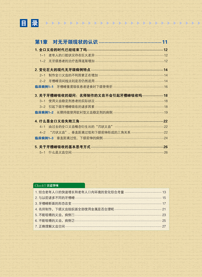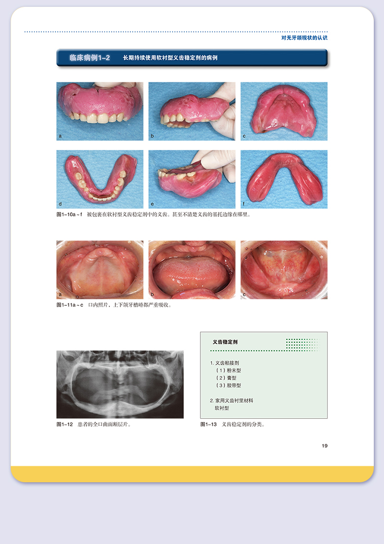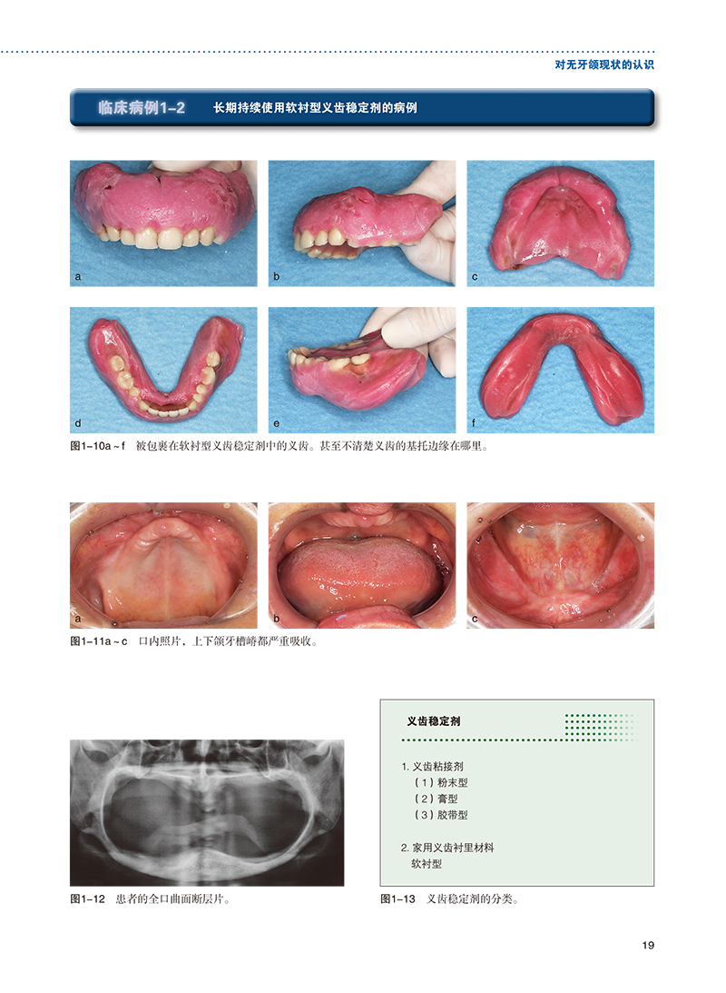 (1) 无牙颌现状的认识探讨了现代无牙颌患者的特点,包括老年人口的快速增长、无牙颌治疗选择的多样化,以及牙槽嵴吸收对全口义齿设计的影响。通过临床案例展示了牙槽嵴吸收的严重性及其对义齿功能的影响。