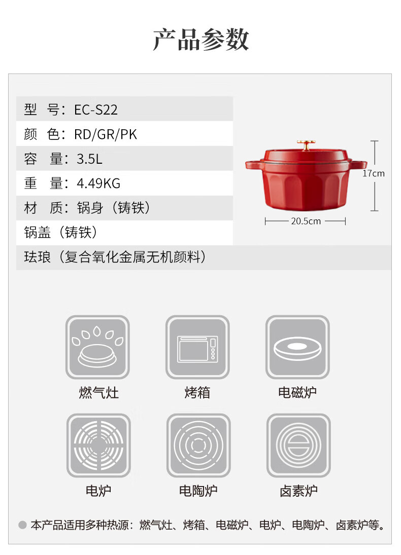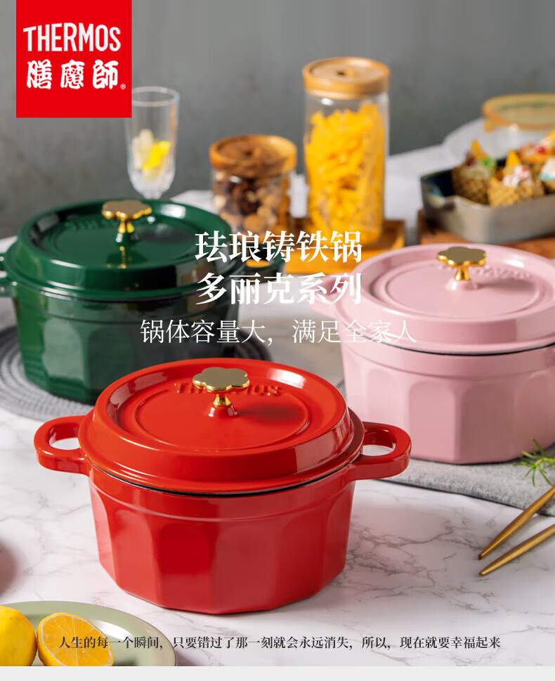 膳魔师珐琅锅家用炖锅铸铁锅汤锅 EC-S22/个( 红色/绿色颜色备注 )