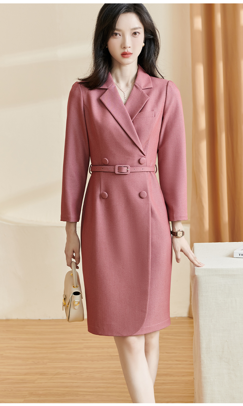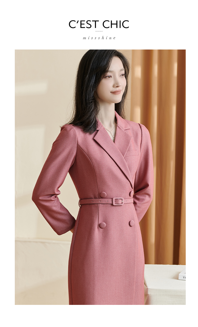 双色肌理豆沙红 显白不挑皮的高级色 抗皱免熨 通勤/约会/开会皆可 显高显瘦 立体挺拔 米思阳2026春新款通勤OL修身长袖西装领连衣裙女2273