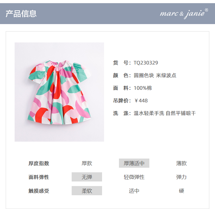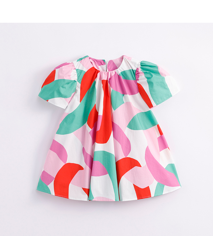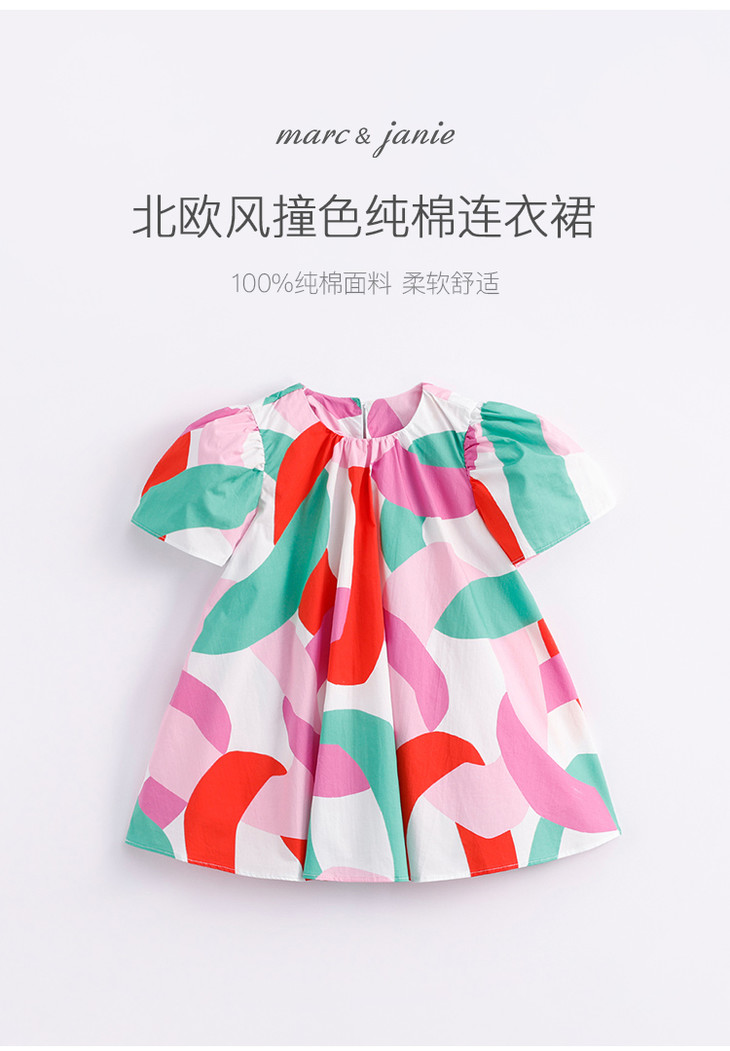 马克珍妮新款夏装 女童北欧风图案纯棉连衣裙230329