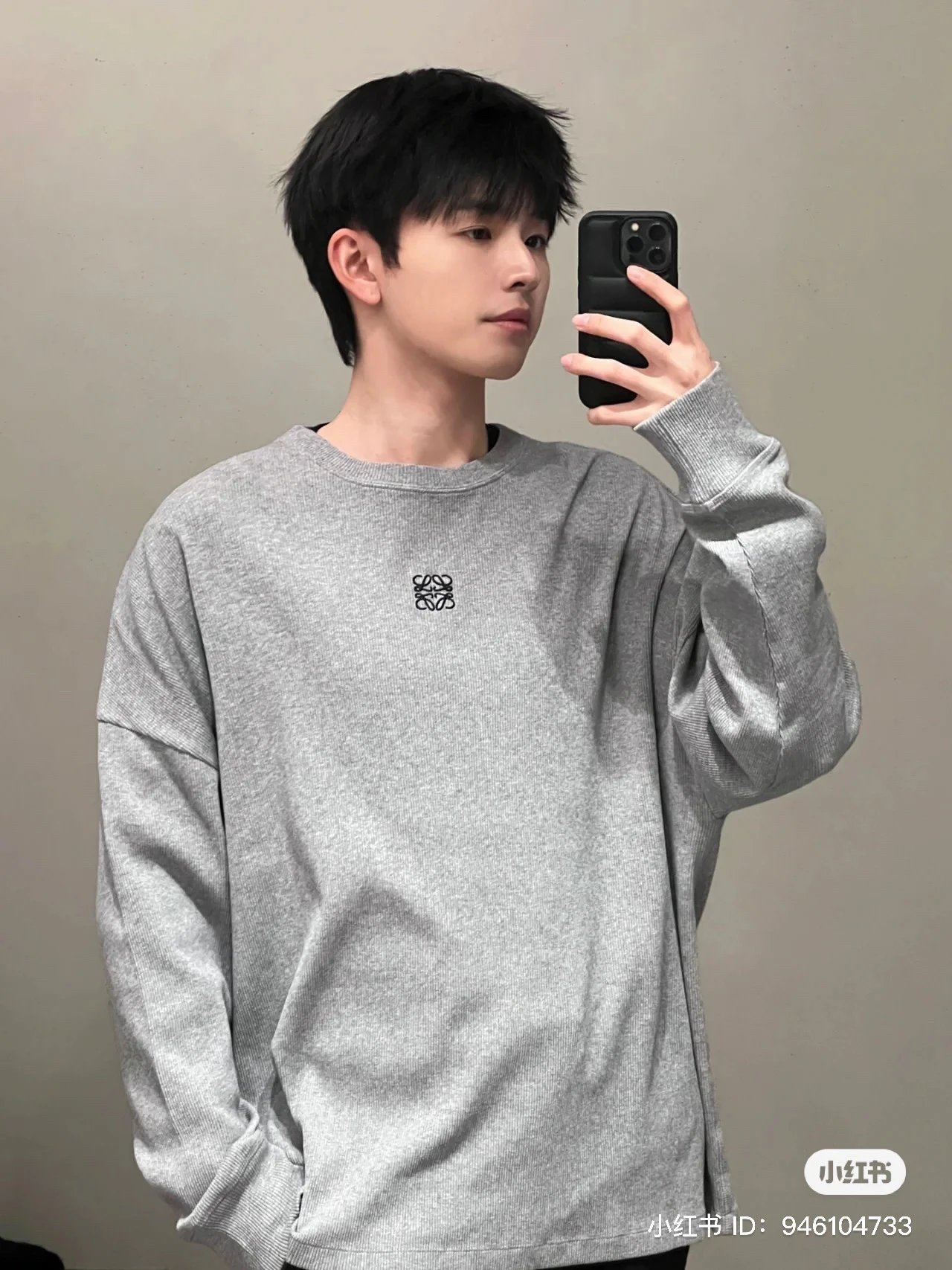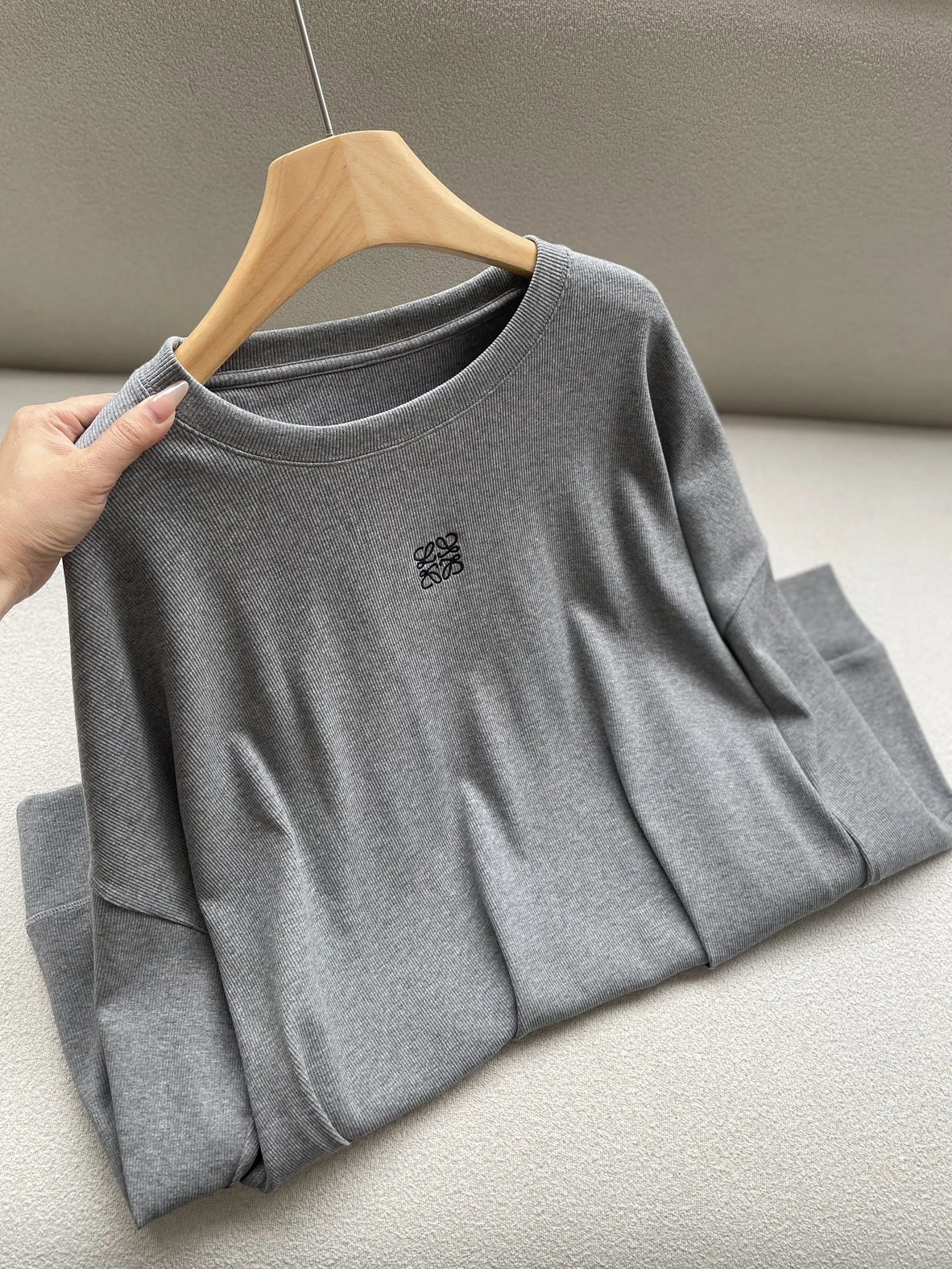 重磅渠道 loew刺绣圆领棉TEE 宽松OS版长袖T恤 男女同款