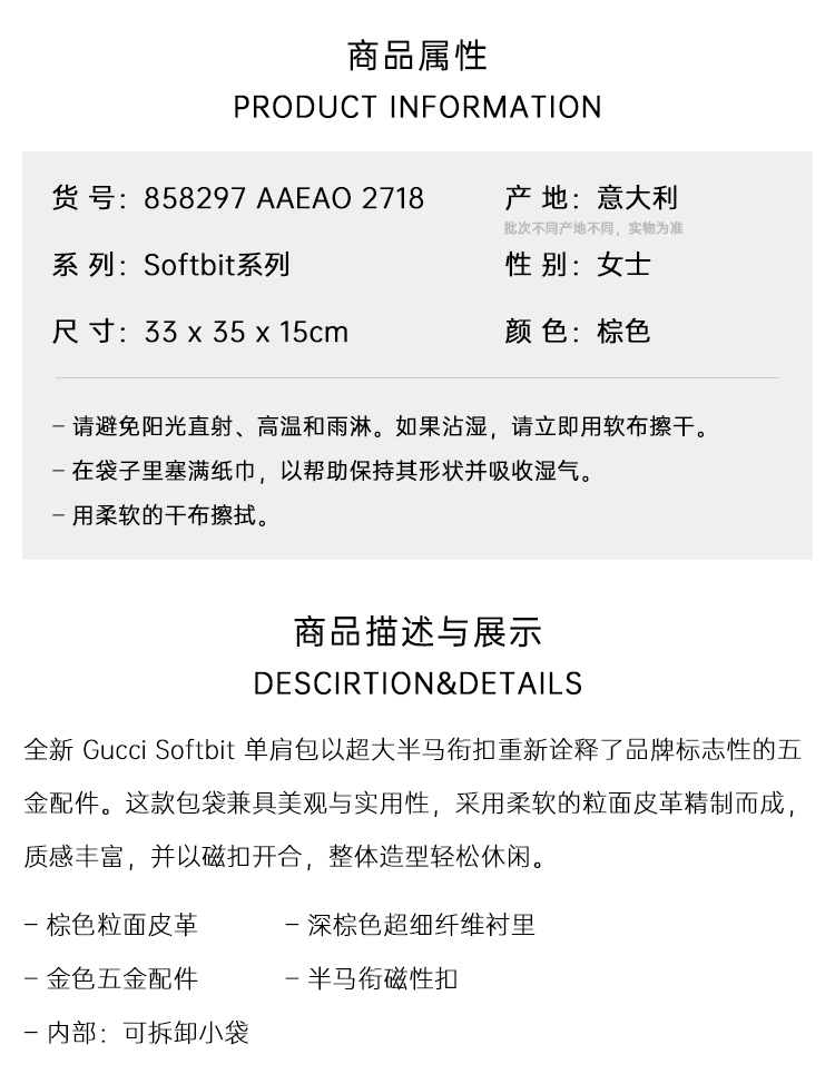 GUCCI 古驰 女士 Softbit 粒面皮革手提包 棕色 858297 AAEAO 2718