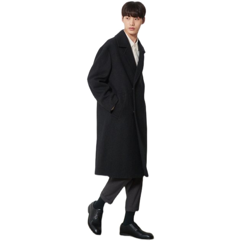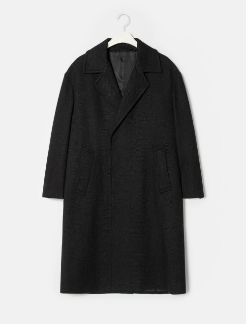 20FW 黑色羊毛混纺人字形隐形纽扣单外套JPY带授权招加盟代理