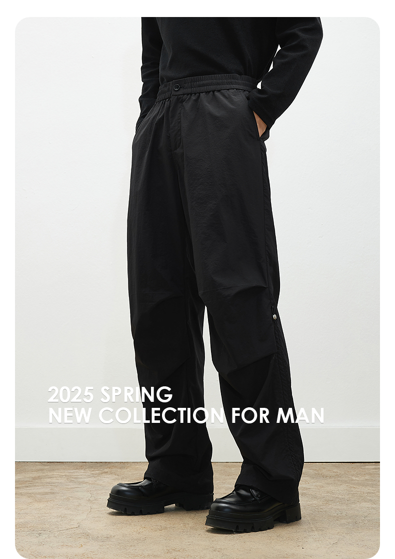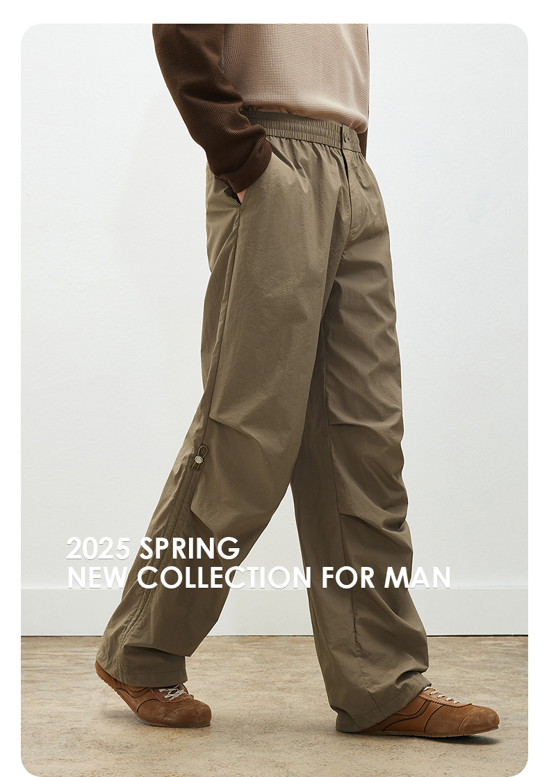GXG男装 2025年春季GXG热卖时尚抽褶工装裤男士直筒休闲长裤