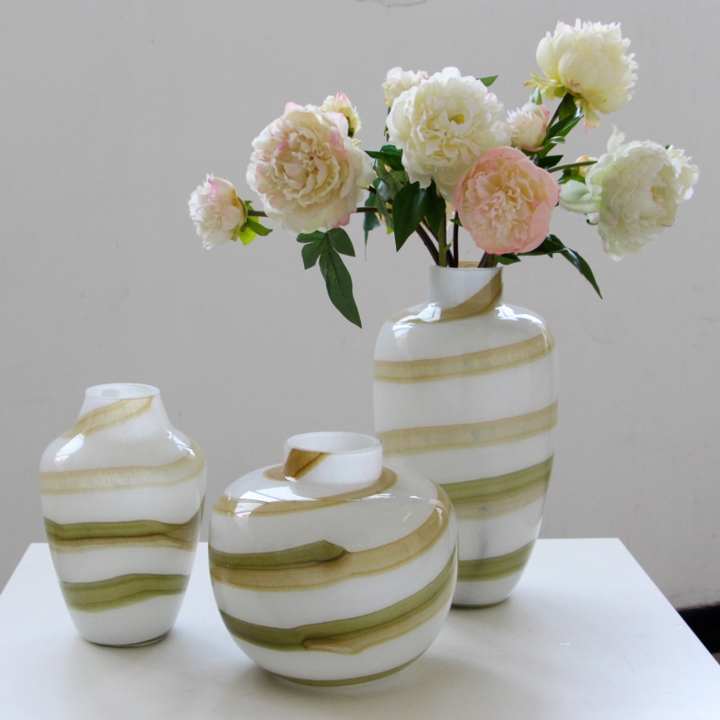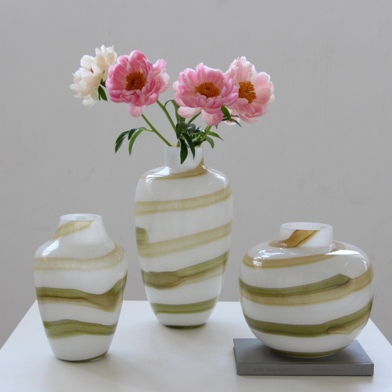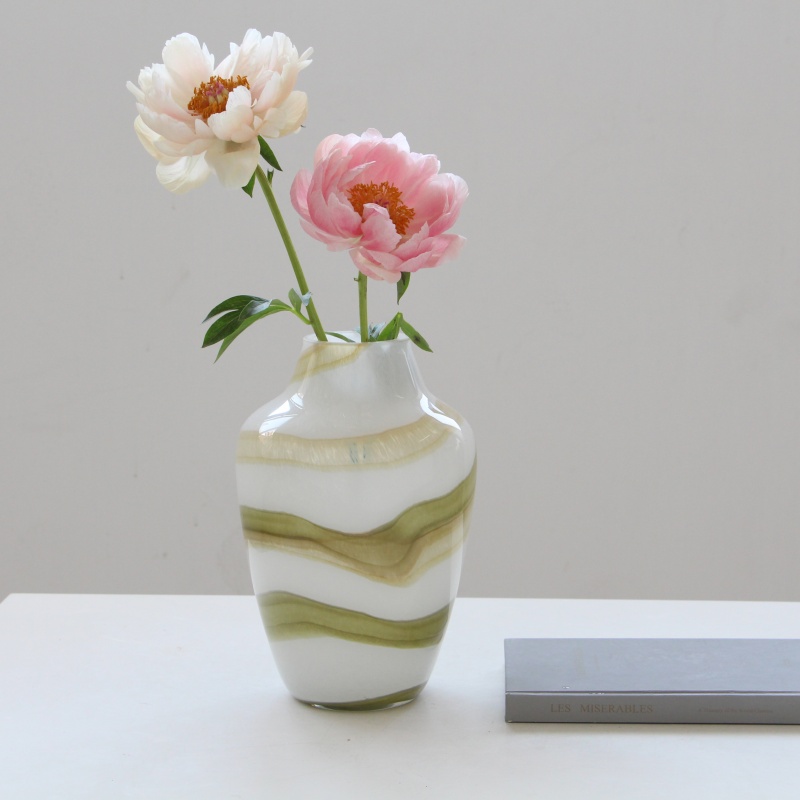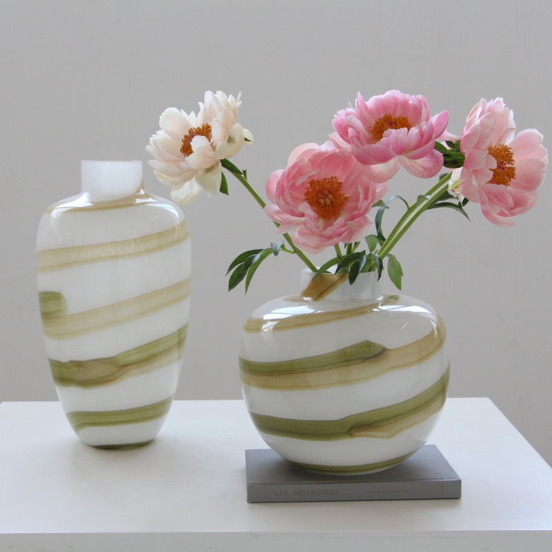 创意轻奢不规则水墨纹玻璃花瓶大肚子家居样板房间客厅插花摆件