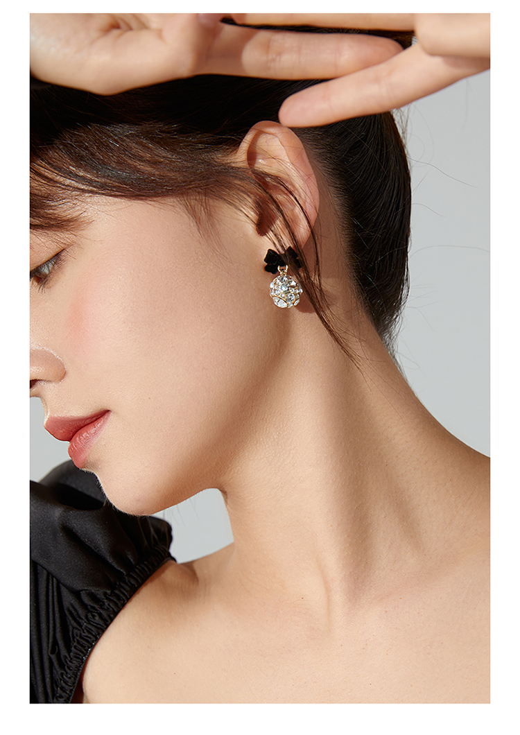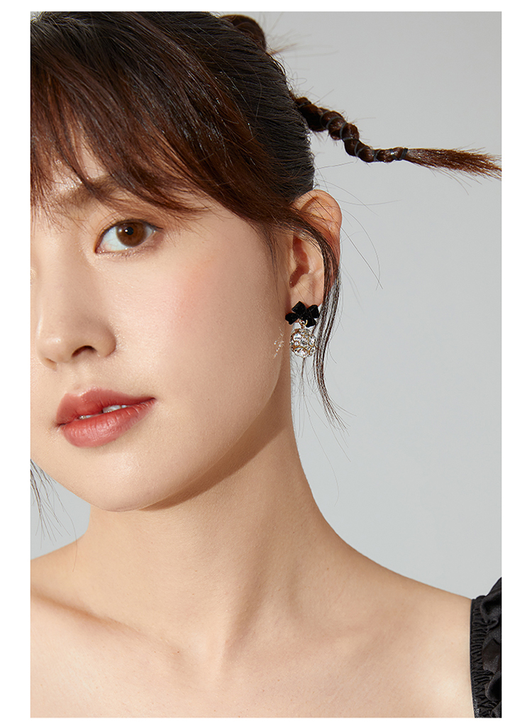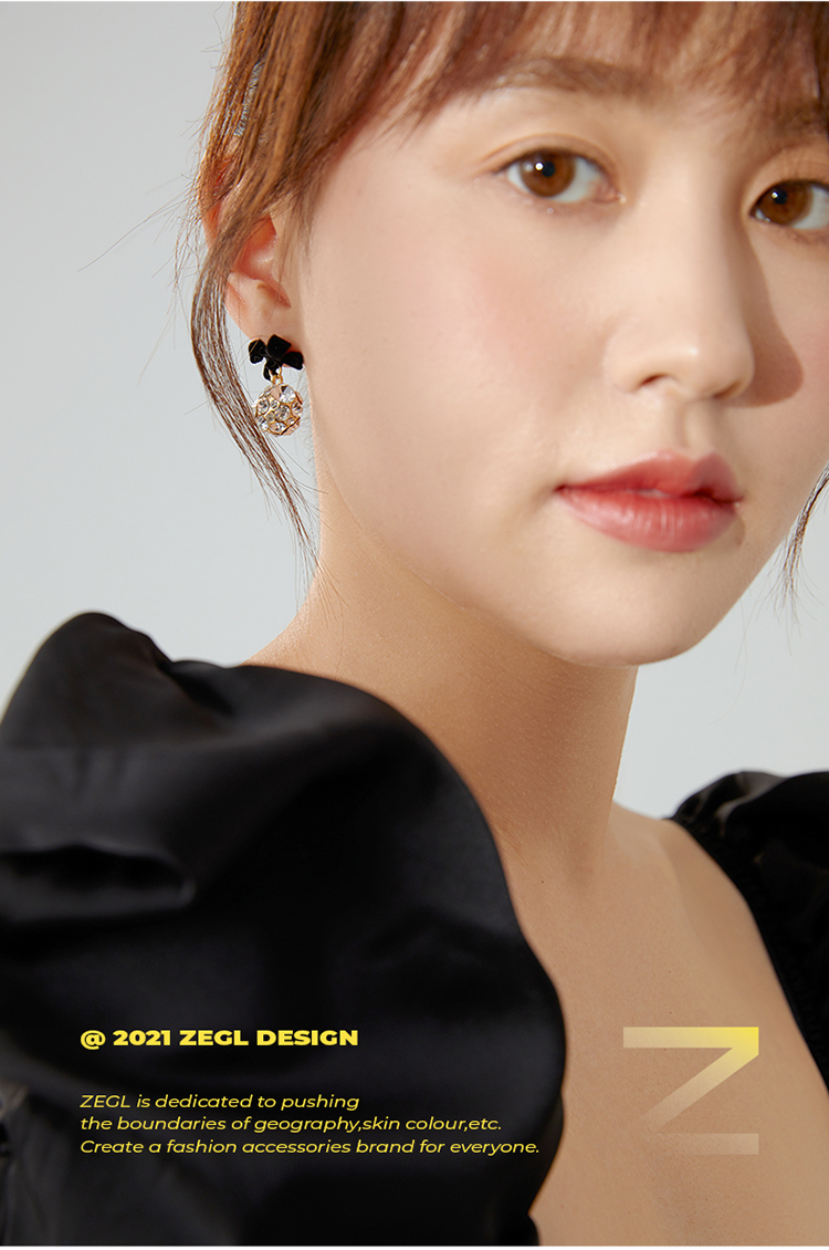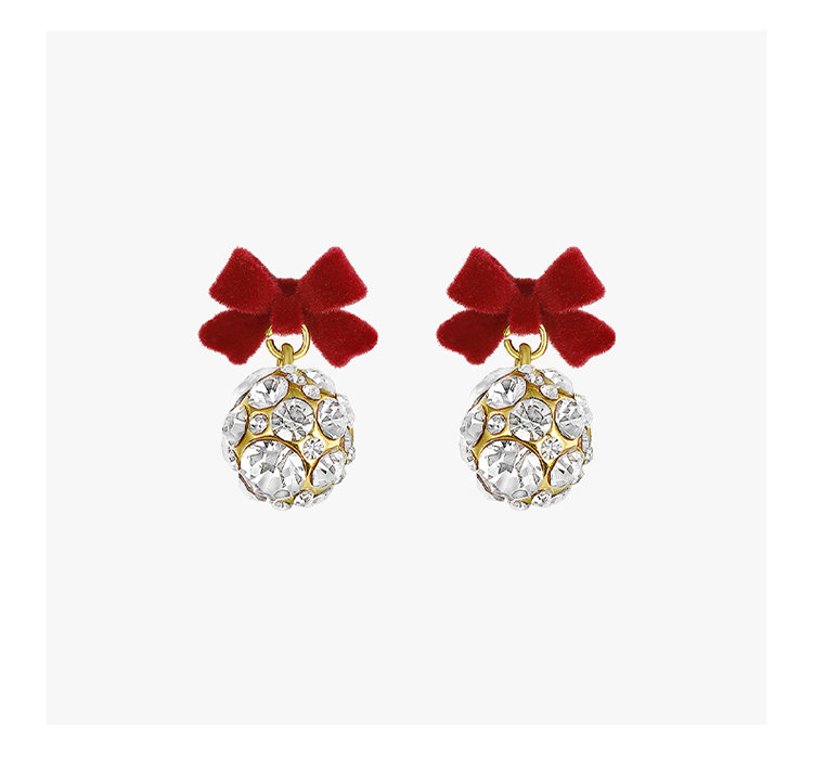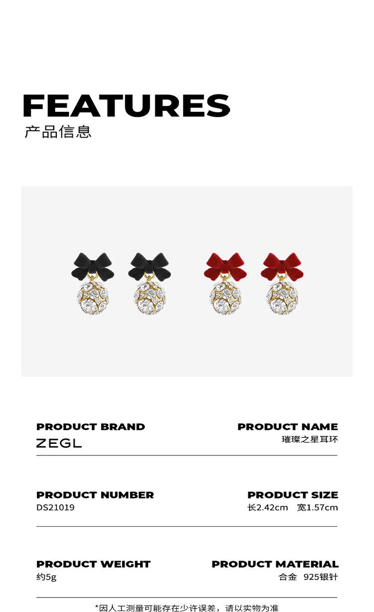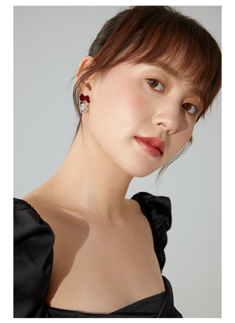 ZEGL红色蝴蝶结耳环女小众设计感耳钉丝绒925银针秋冬新年耳饰品
