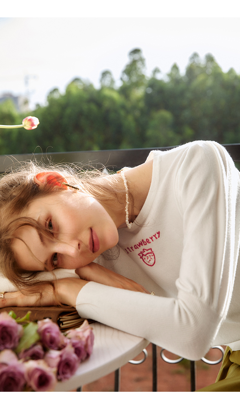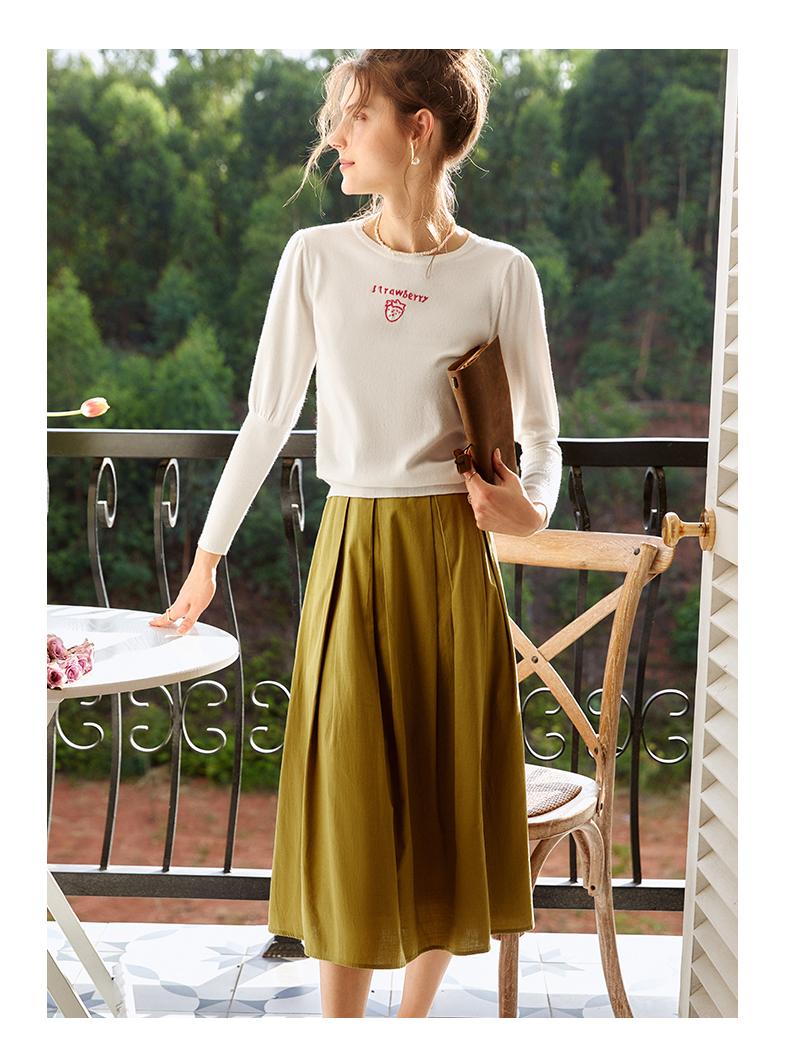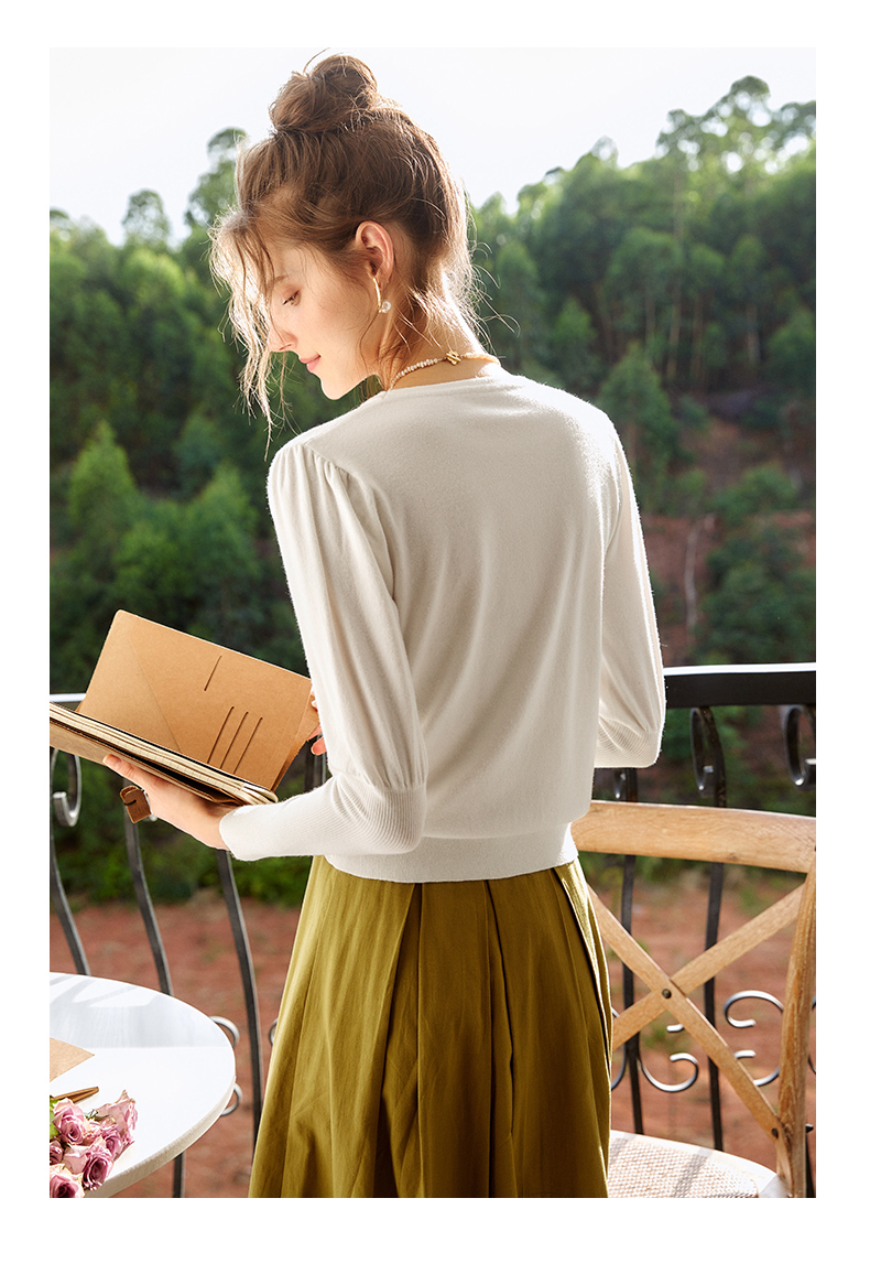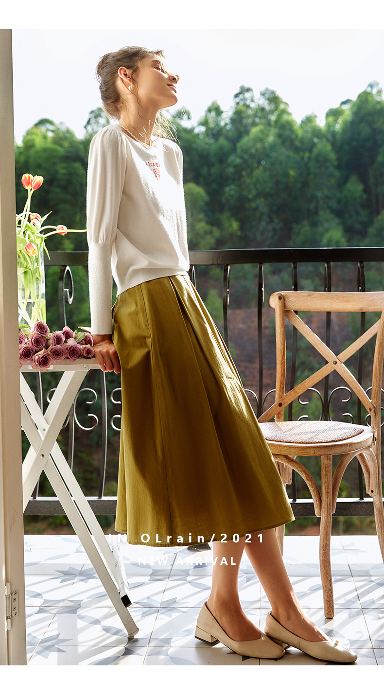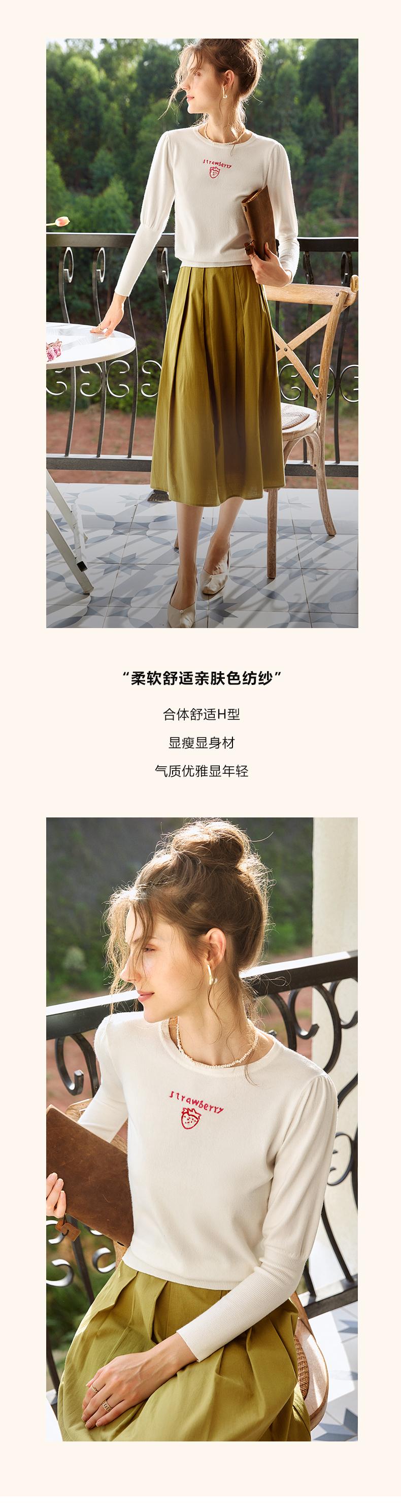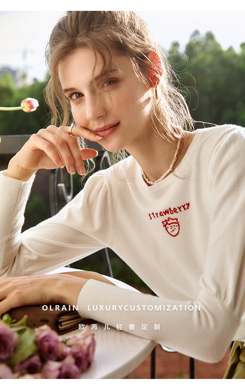 欧芮儿毛衣女宽松外穿2021新款圆领慵懒风薄款白色打底套头衫