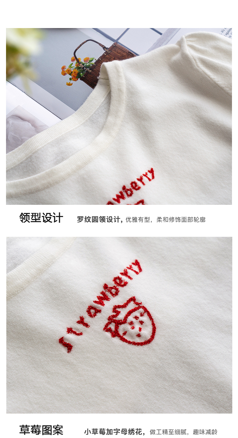 欧芮儿珠片刺绣t恤女2021年新款灯笼袖休闲宽松气质时髦优雅上衣