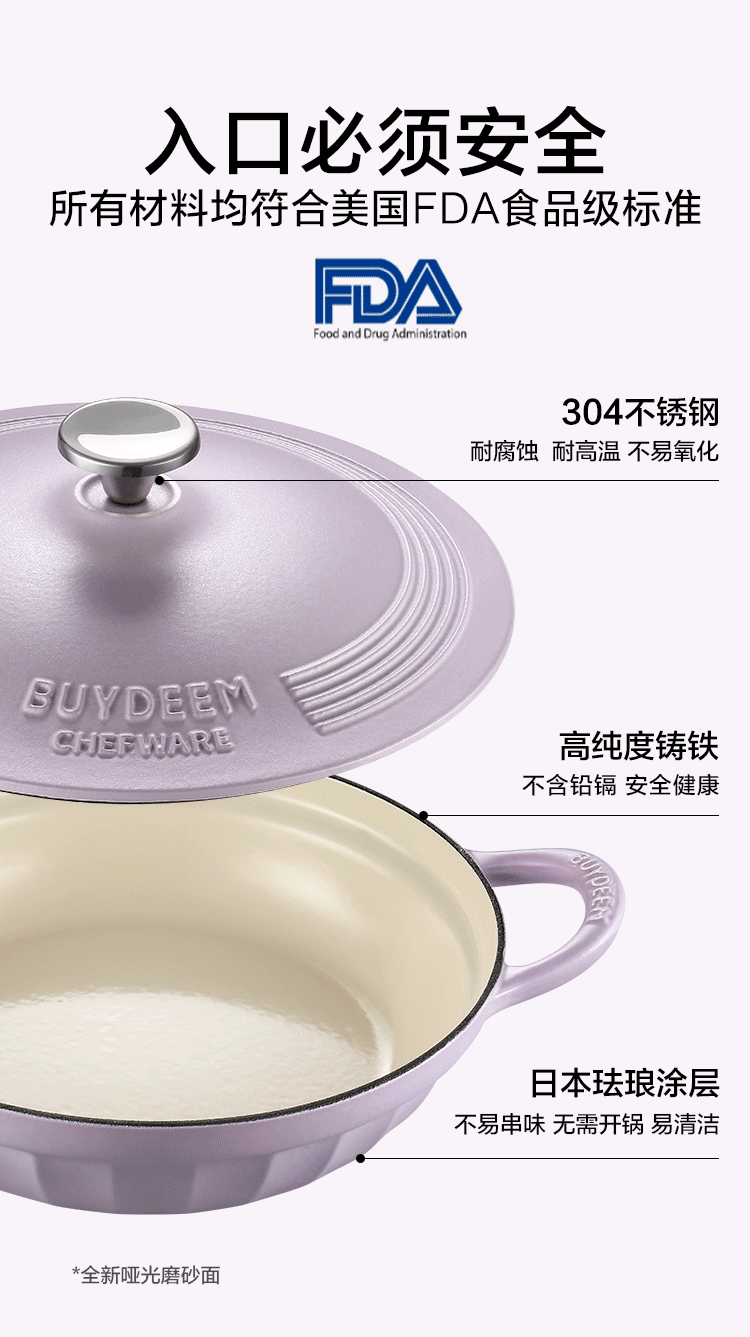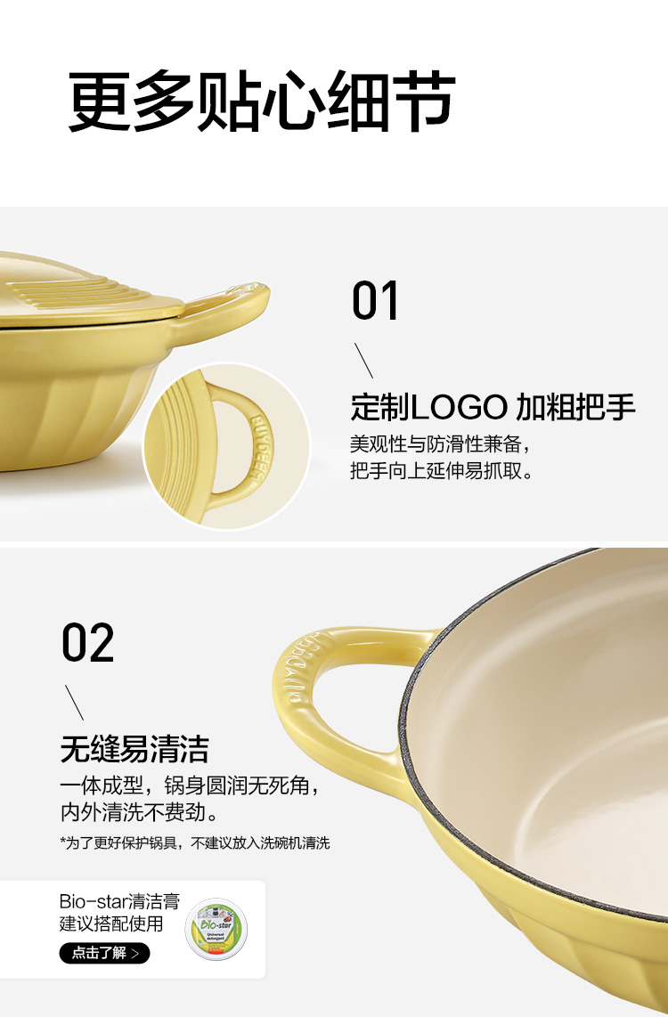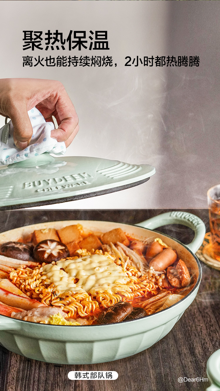 北鼎28CM珐琅锅铸铁锅焖焗锅海鲜锅家用多功能锅焖炖炒锅