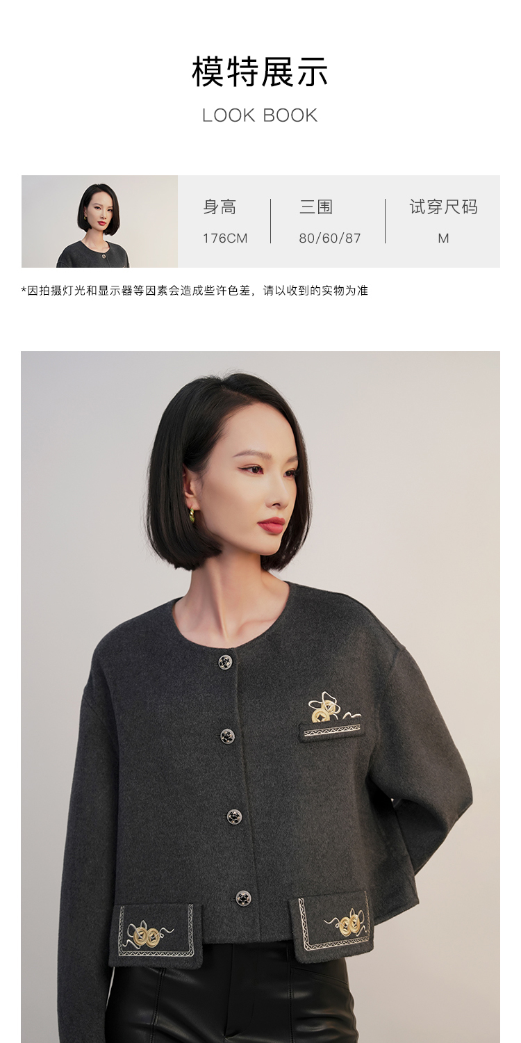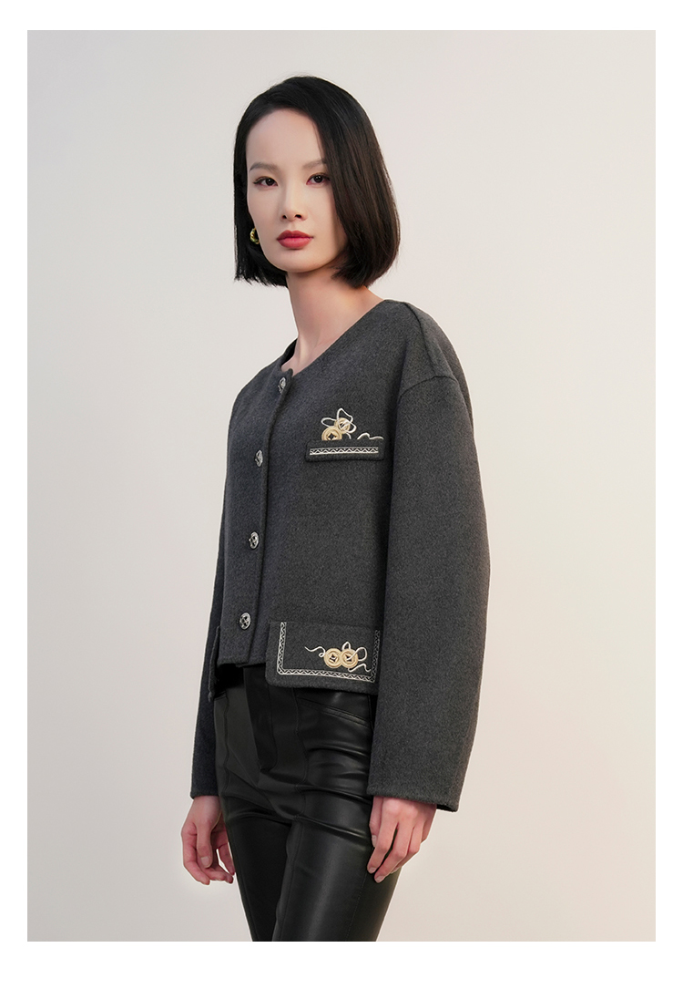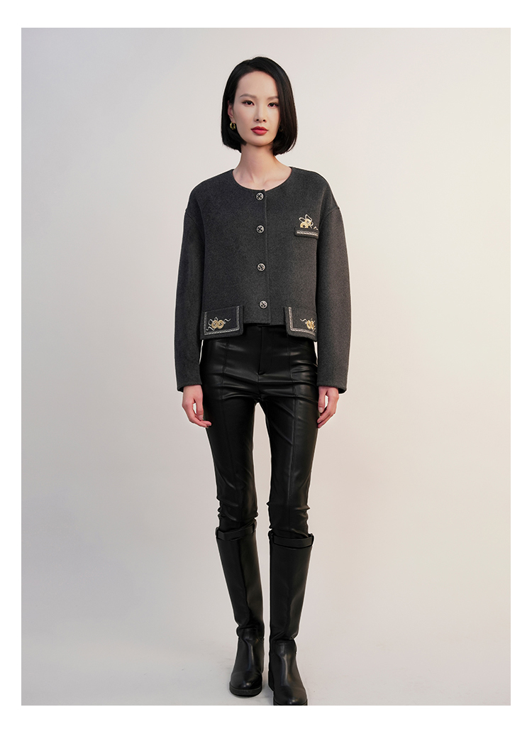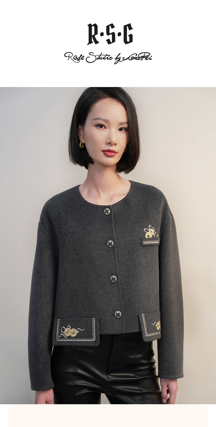 郭培成衣RSG「黛灰柔绒」刺绣短款开衫羊毛外套2025秋冬新品