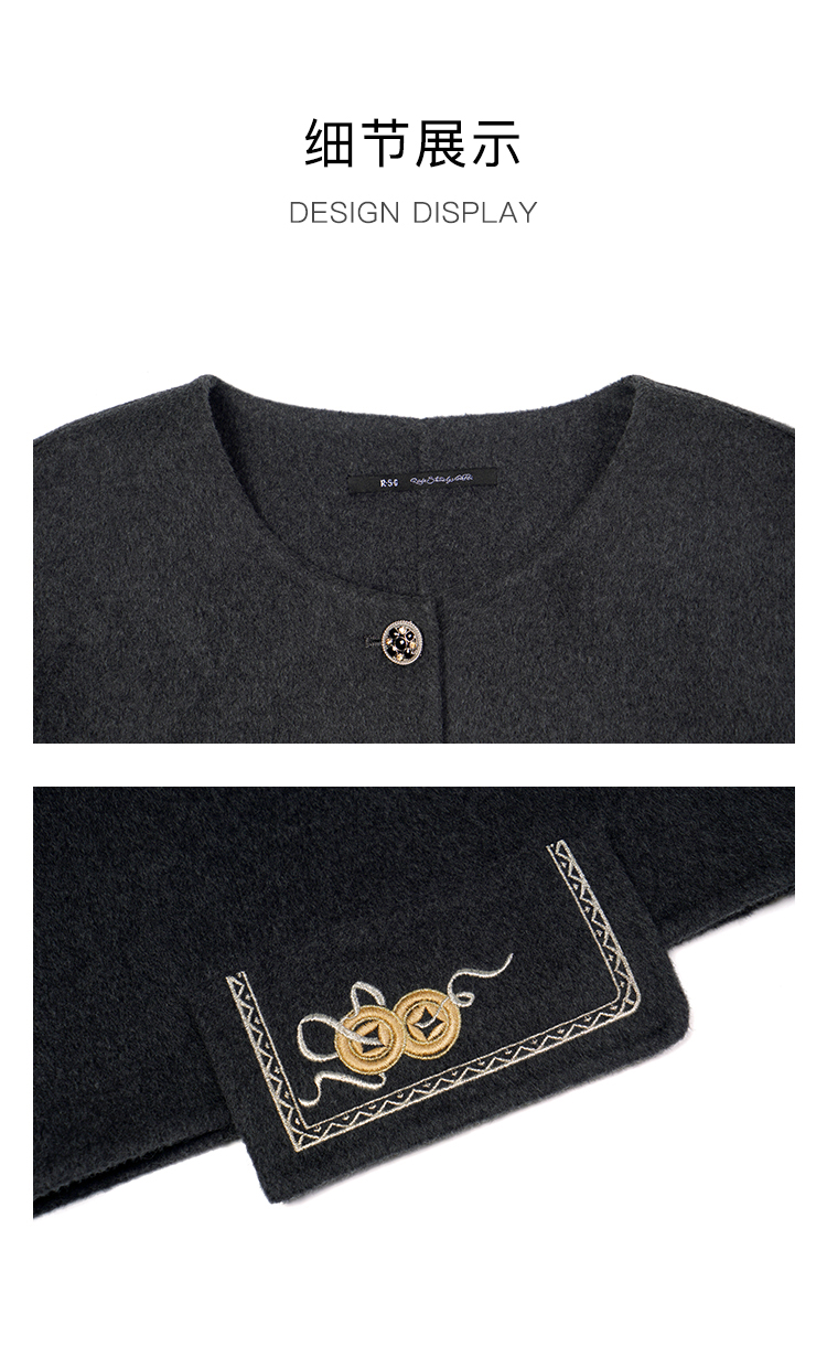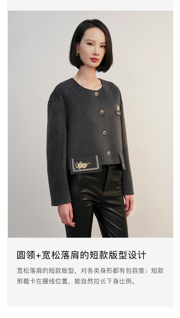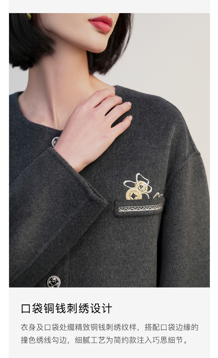郭培成衣RSG「黛灰柔绒」刺绣短款开衫羊毛外套2025秋冬新品