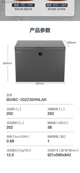 容声 冰柜 BD/BC-202Z30HNLAK 202升 风冷 变频 一级能效 顶开门 单温 冷冻冷藏 灰色系