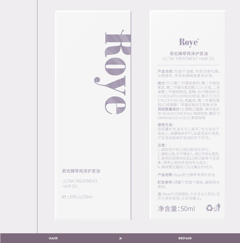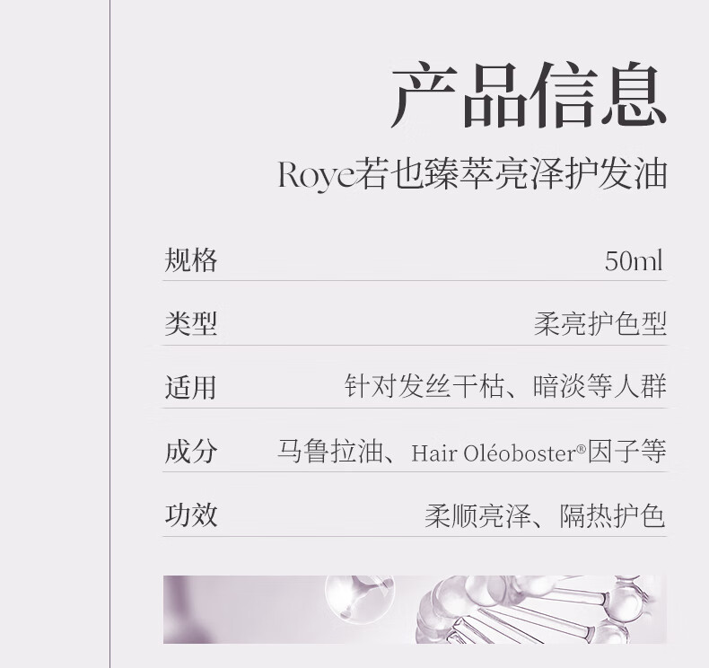 若也臻萃亮泽护发油 50ml 改善毛躁分叉干枯卷烫发护理