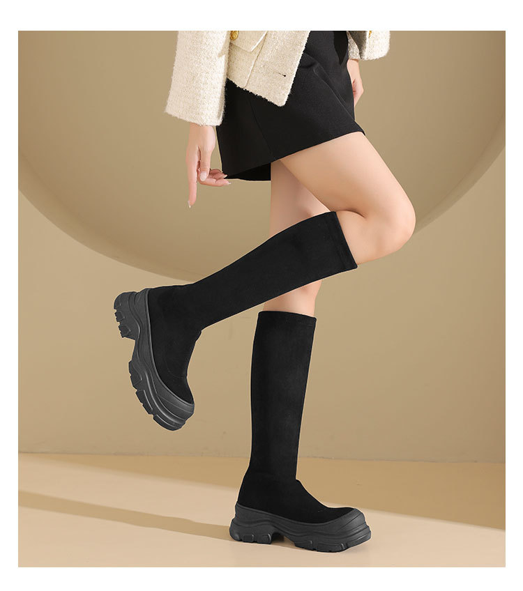 westory2024年秋冬季款纯色细高跟尖头性感长筒高筒弹力瘦瘦靴S24DQ84641