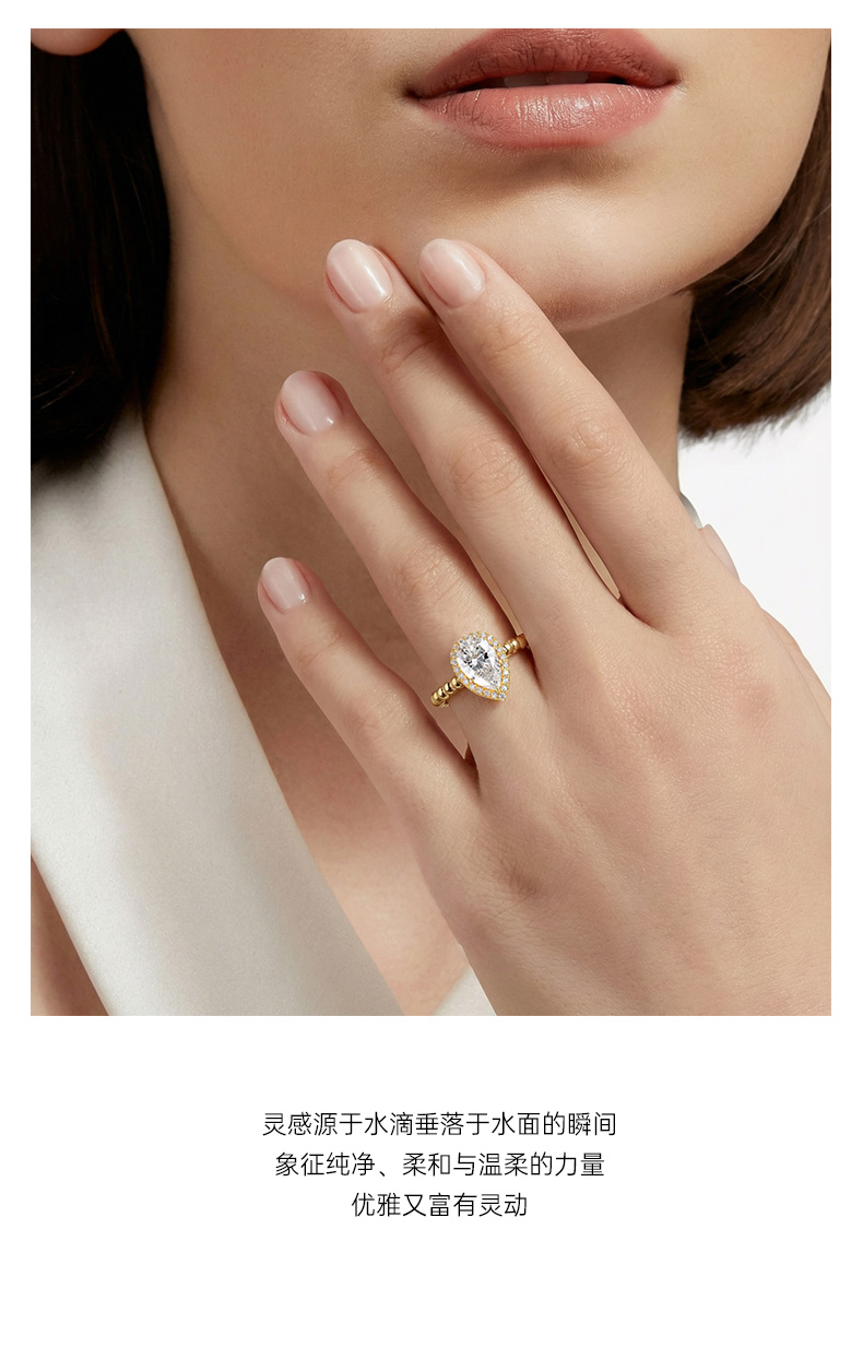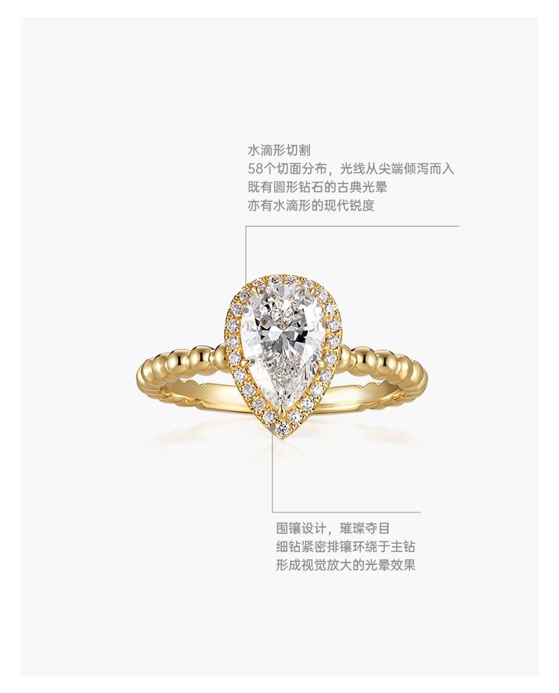 ShiningHouse[培育] 18k金钻石戒指女 水滴形1克拉钻人工真钻人造钻石K金戒指女悦己送礼优选【此商品不支持7天无理由退货退款】预计3日发货
