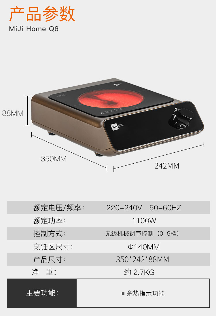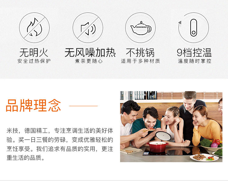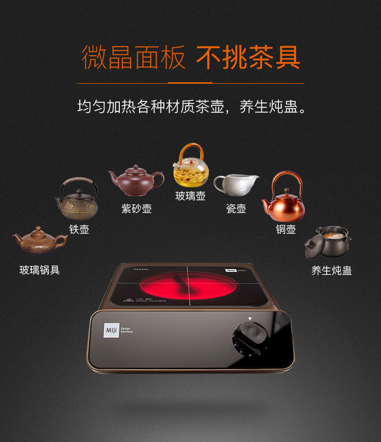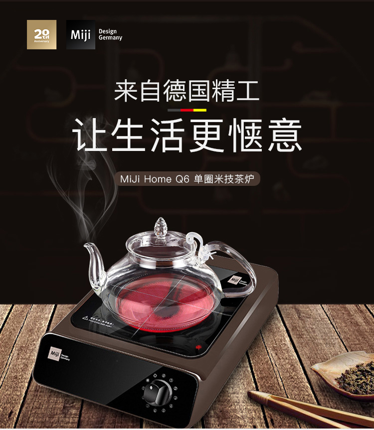 米技Miji电陶炉电磁炉德国米技炉电煮茶炉家用办公便携台式茶炉 Home Q6 咖色 1100W