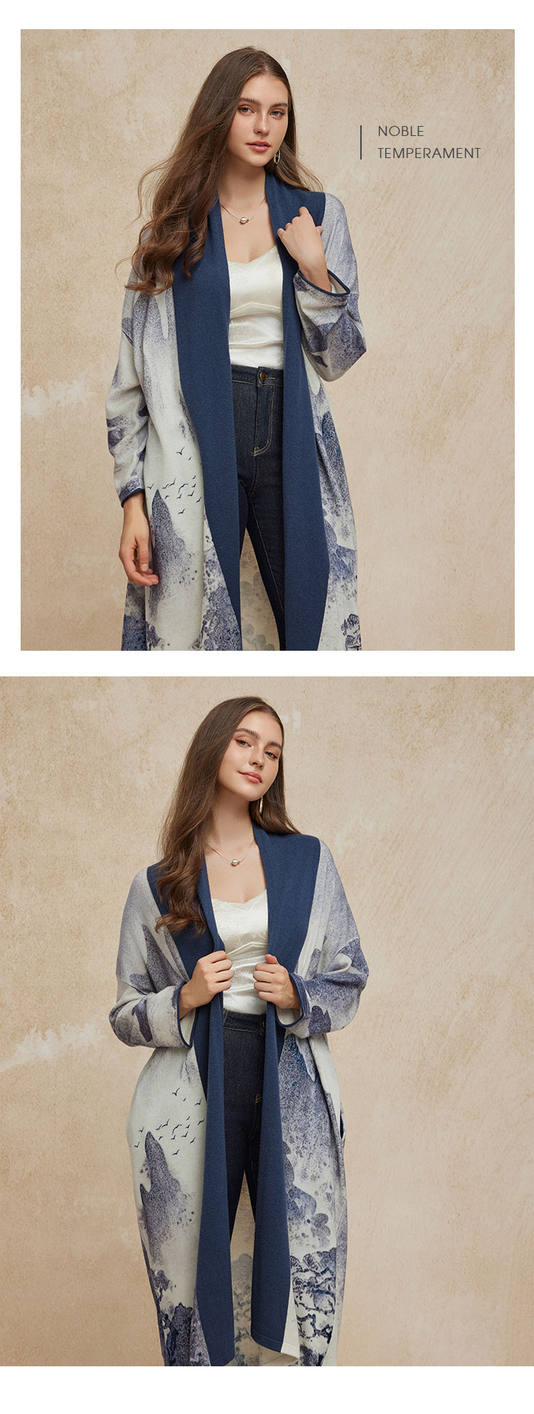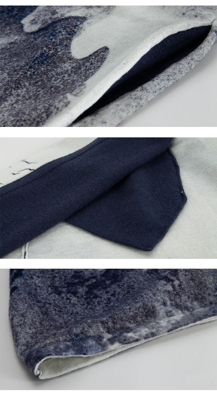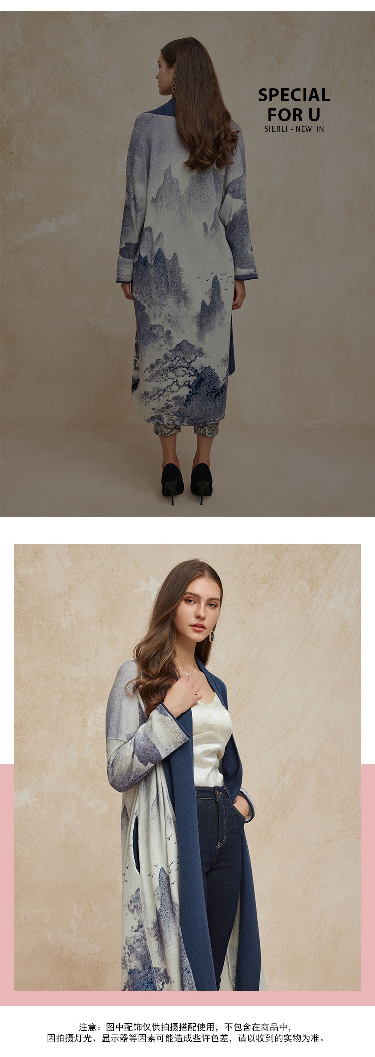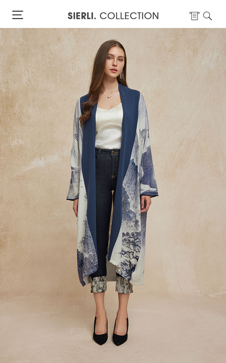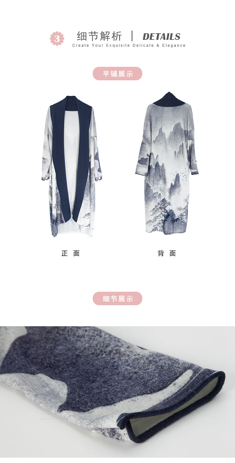 PH606斯尔丽24新款水墨印花国风感开衫廓形时尚显瘦长外套毛衫