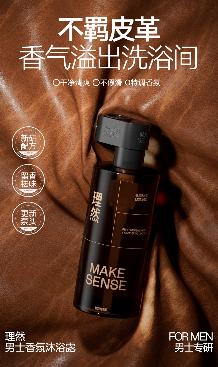 理然香氛沐浴露400g(流浪皮革)-2340,买理然任意洗沐产品2瓶加送理然清爽净肤洁面乳150g