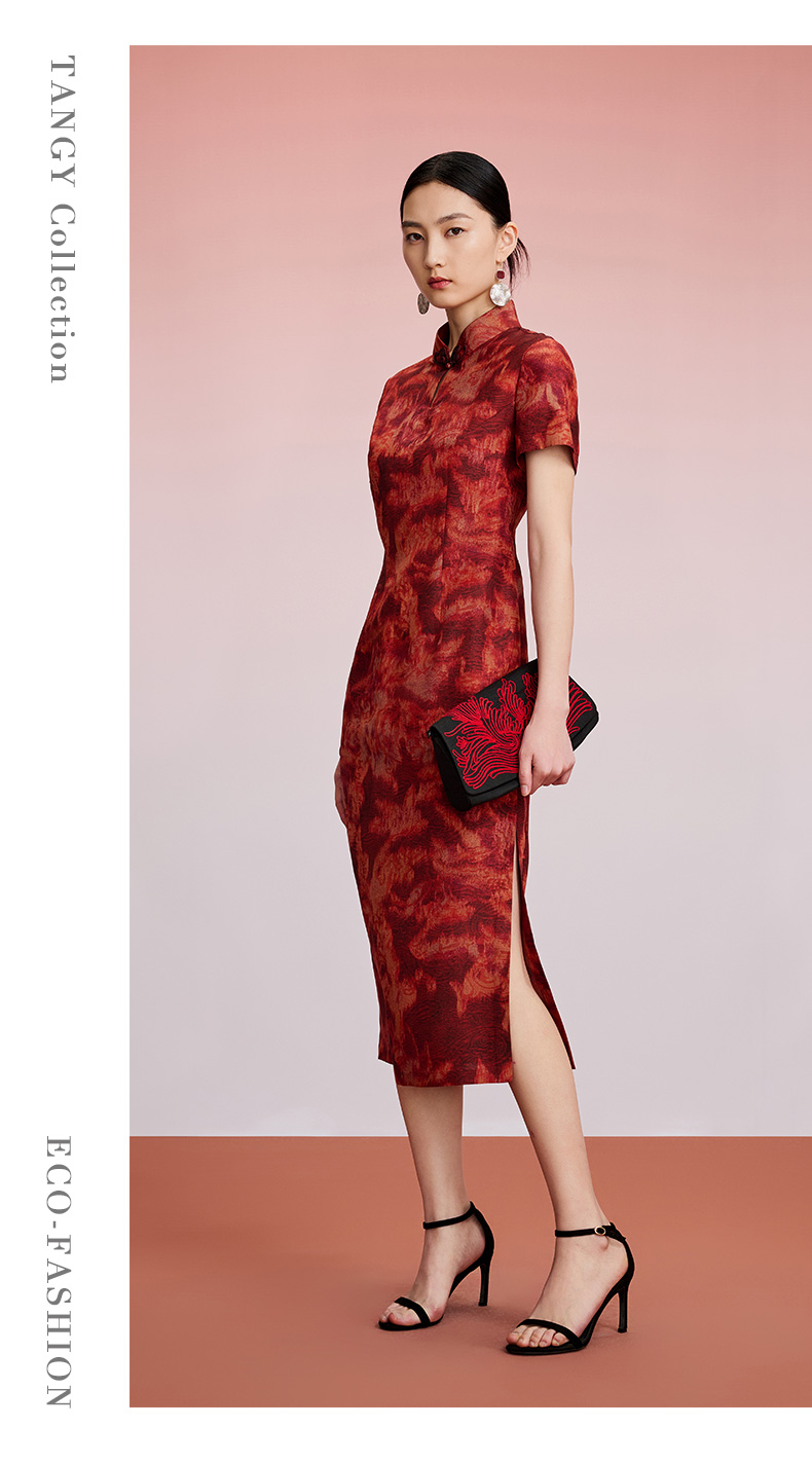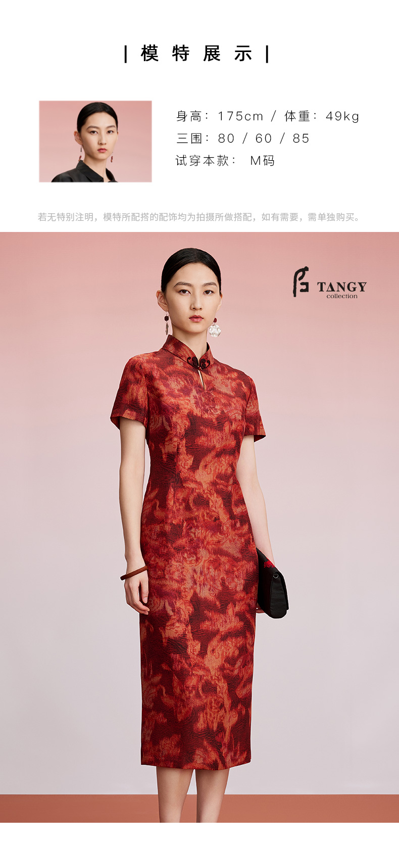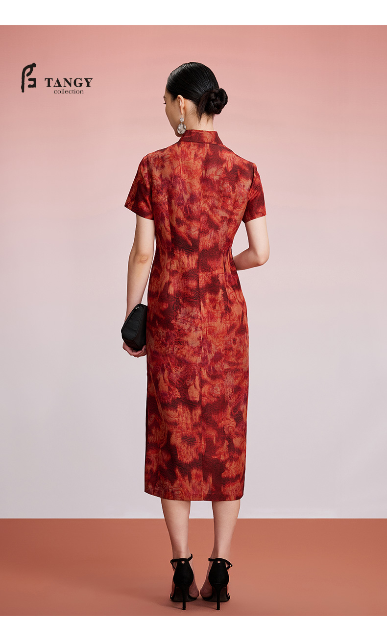TANGY Collection/天意精品2024秋季新品中国风印花中长款女士连衣裙