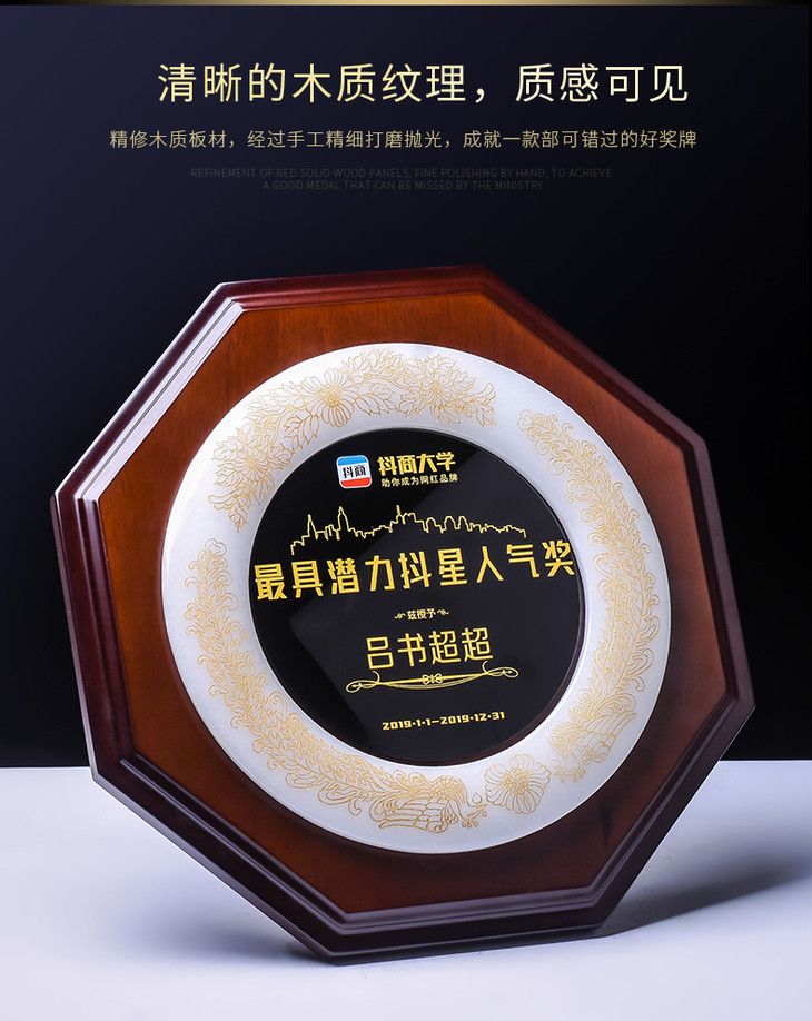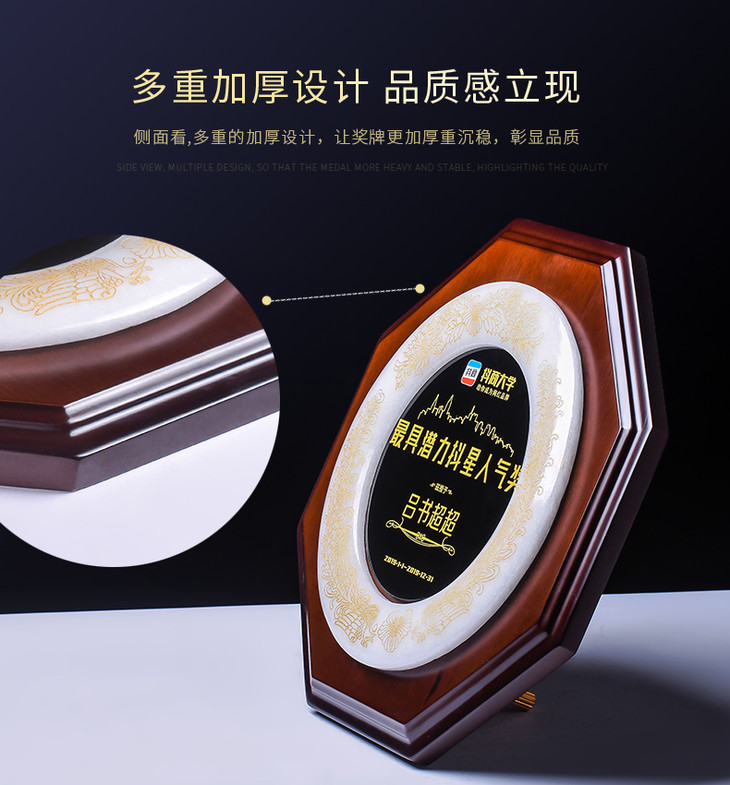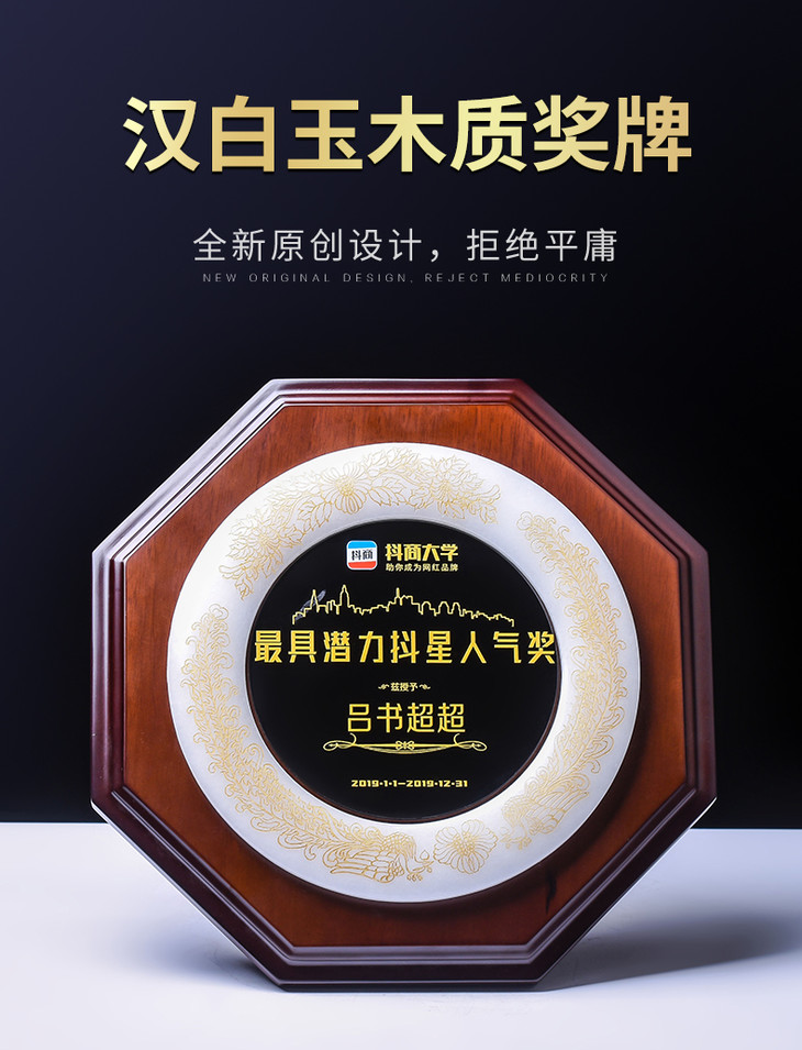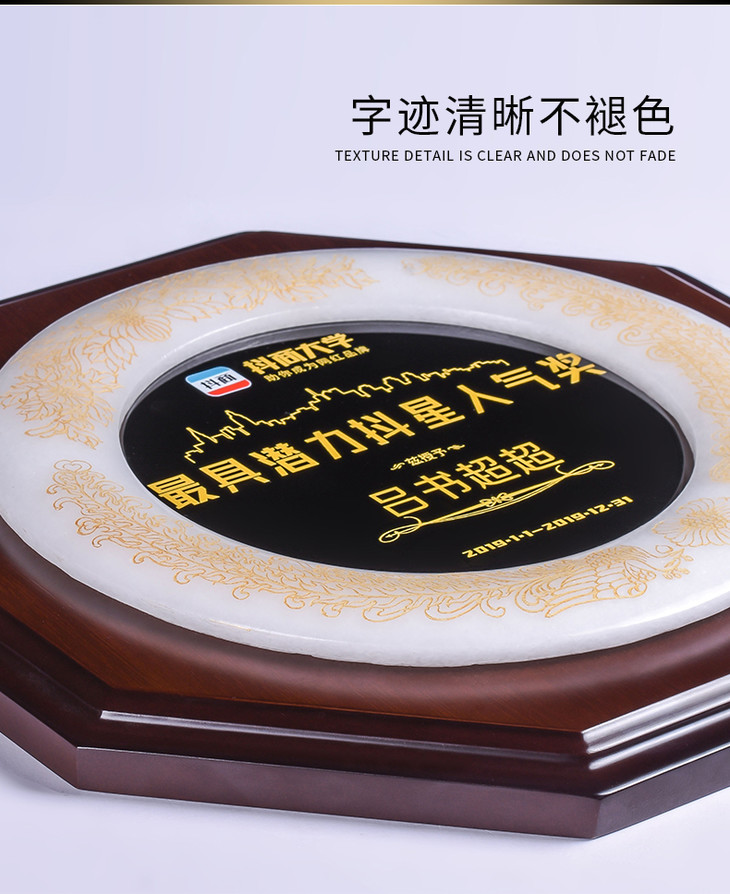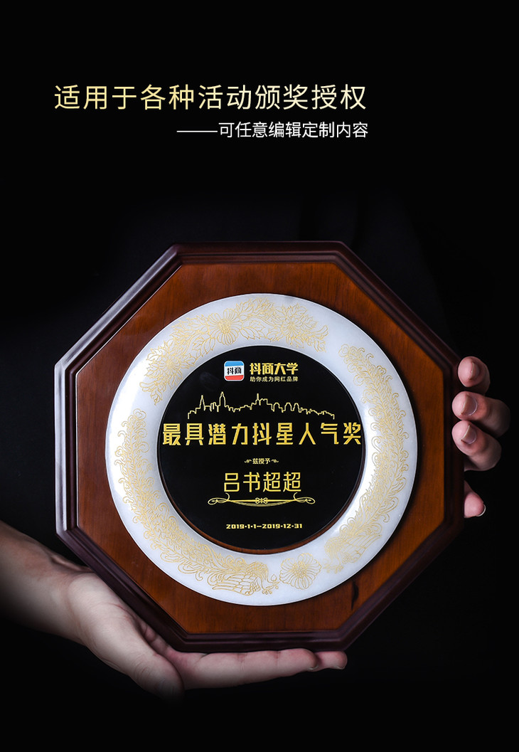 仿玉高档创意木质奖牌定制定做荣誉证书牌匾加盟代理授权牌定制