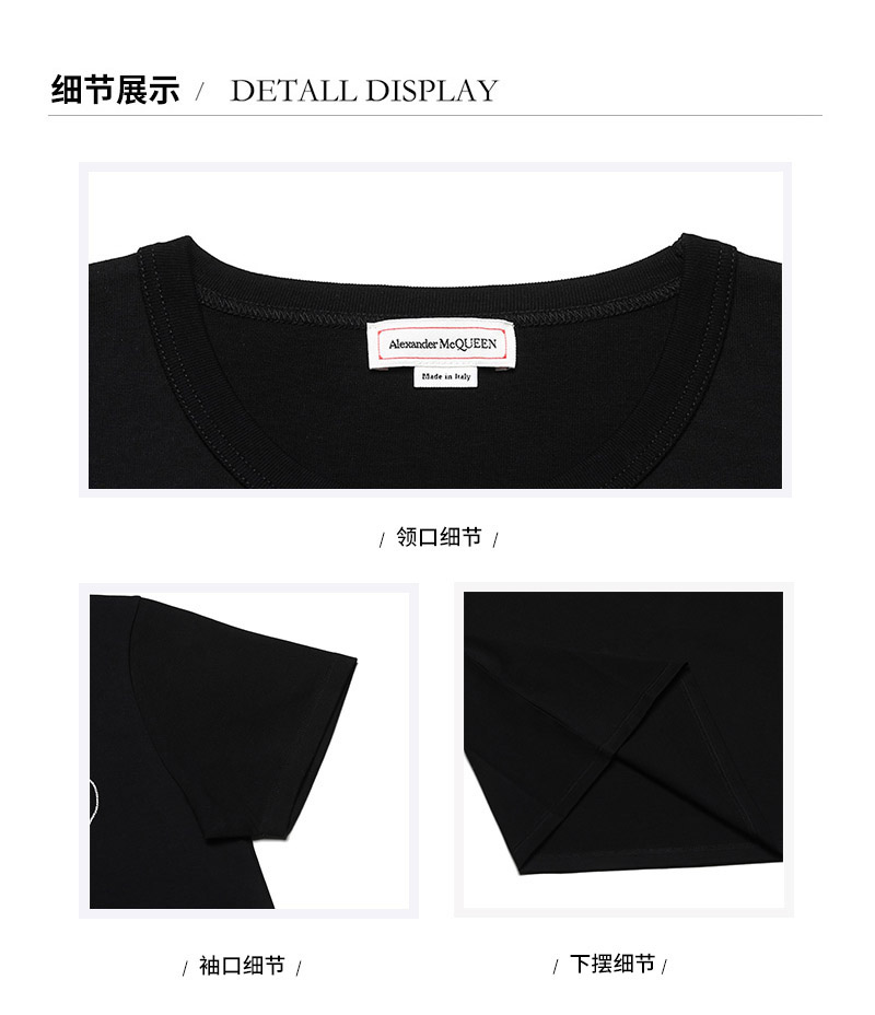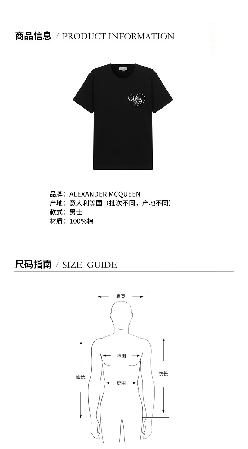 Alexander McQueen/亚历山大麦昆【22春夏新款】男士棉质圆领短袖T恤黑色骷髅图案 683164 QSX03
