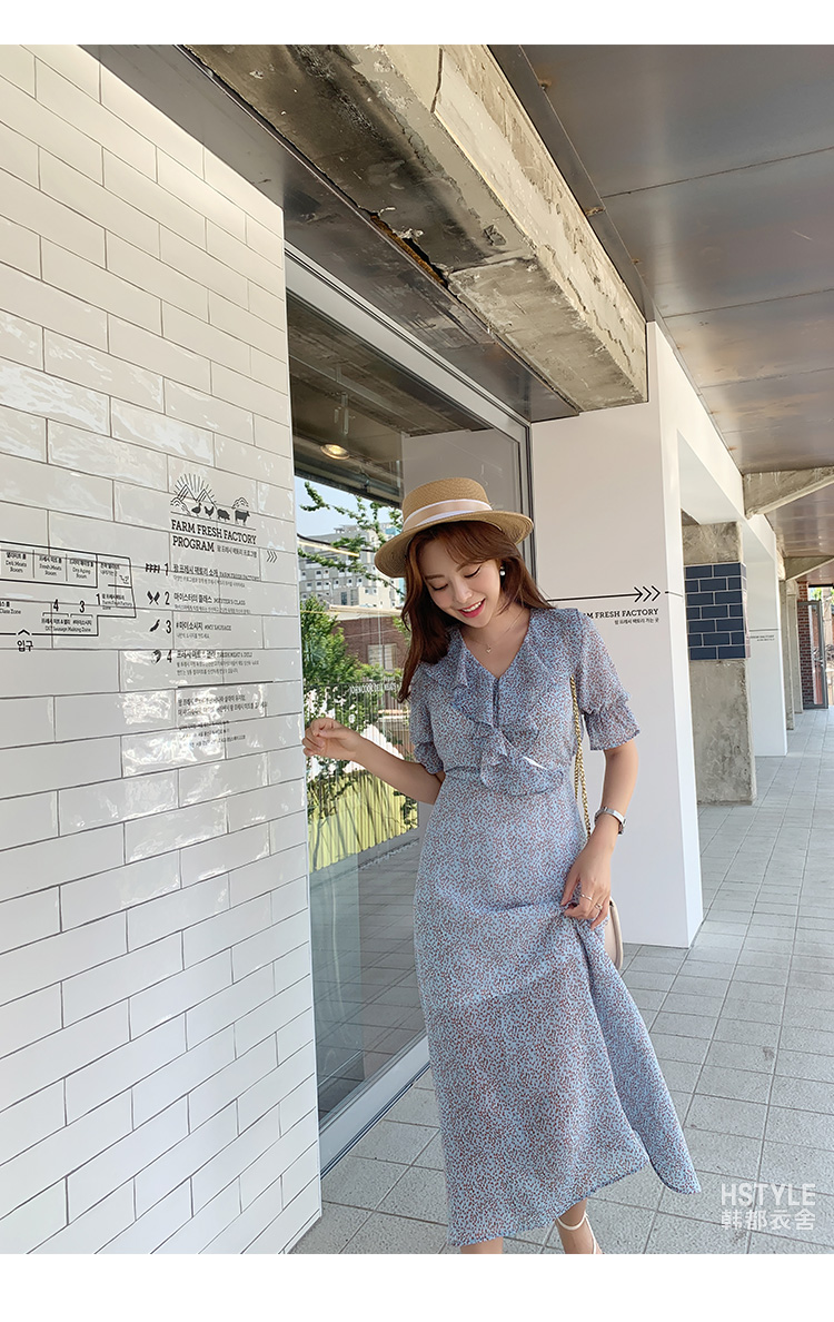 韩都衣舍2021夏装新款女装仙女雪纺茶歇裙chic连衣裙PV9171勝