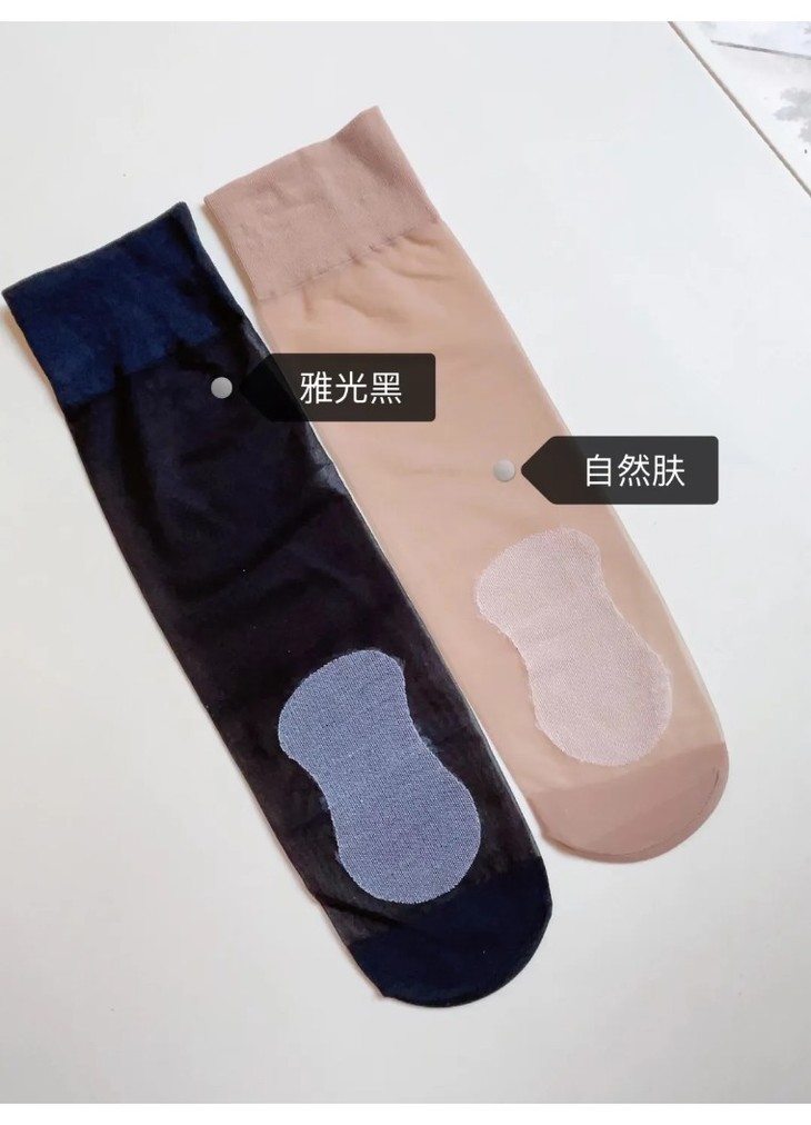 左边是传统的短款丝袜,坐下来就会露边,比较土味比较有年代感,相信每个家庭家人都穿过,以前的人主要轻薄舒适。现在给大家开团的右边款短袜呢,它坐下来也不会露边,做的这个长度特别的智慧,特别的友好,真zheng实现了我们穿肉色丝袜或者是短款丝袜,有隐形的效果👍