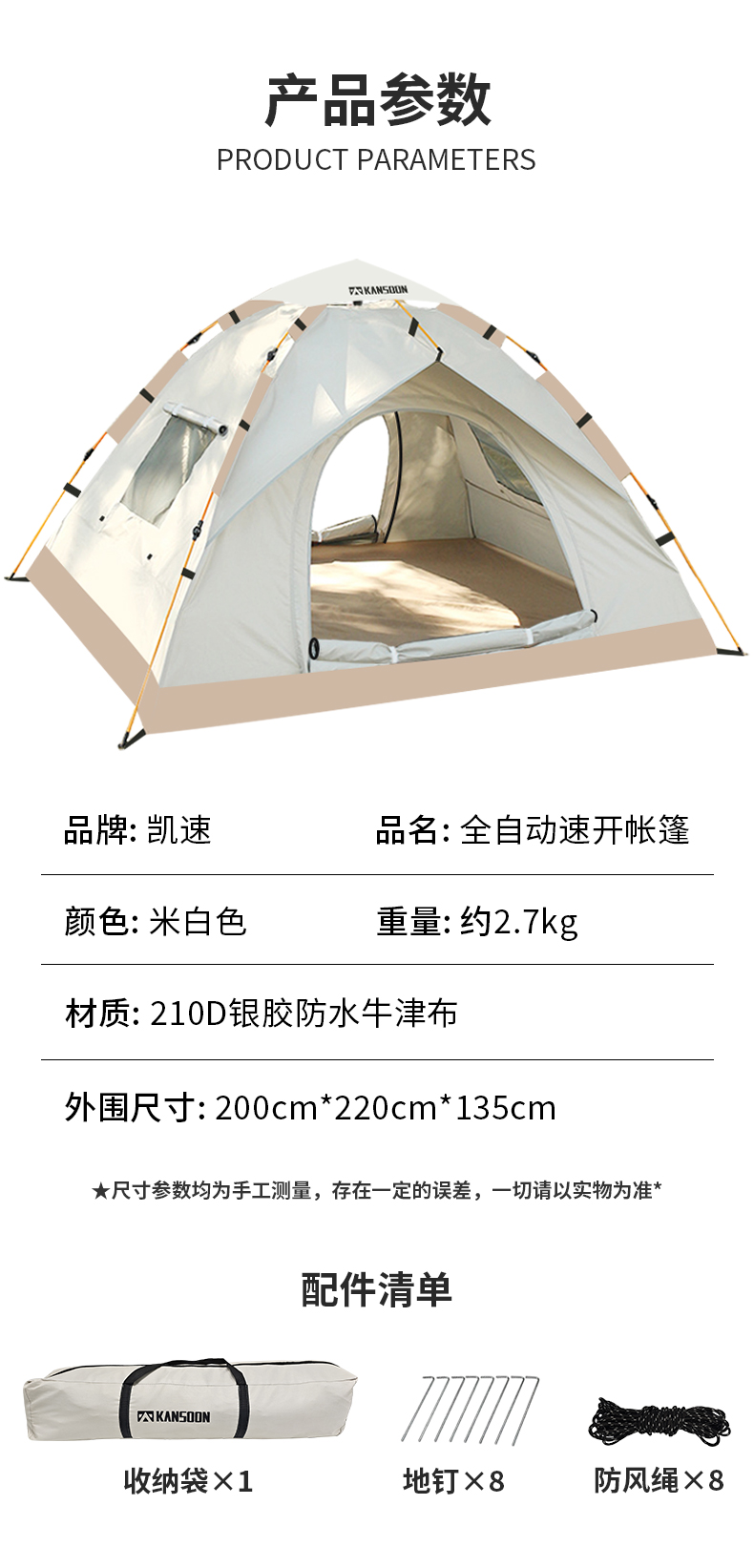 凯速户外全自动帐篷 200cm*220cm*135cm
