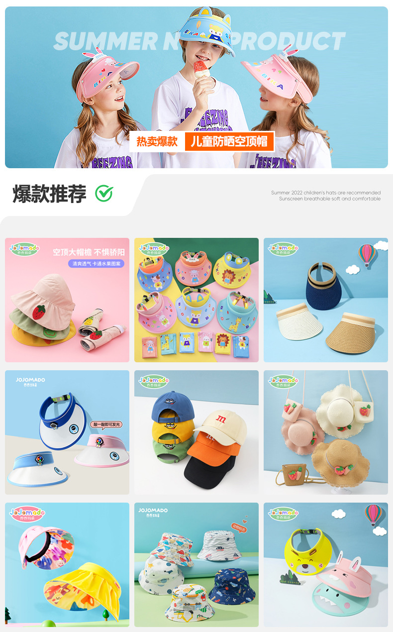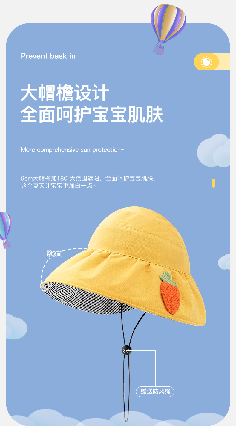 夏季儿童太阳帽户外出行透气男童女童遮阳帽卡通宝宝空顶帽防晒帽