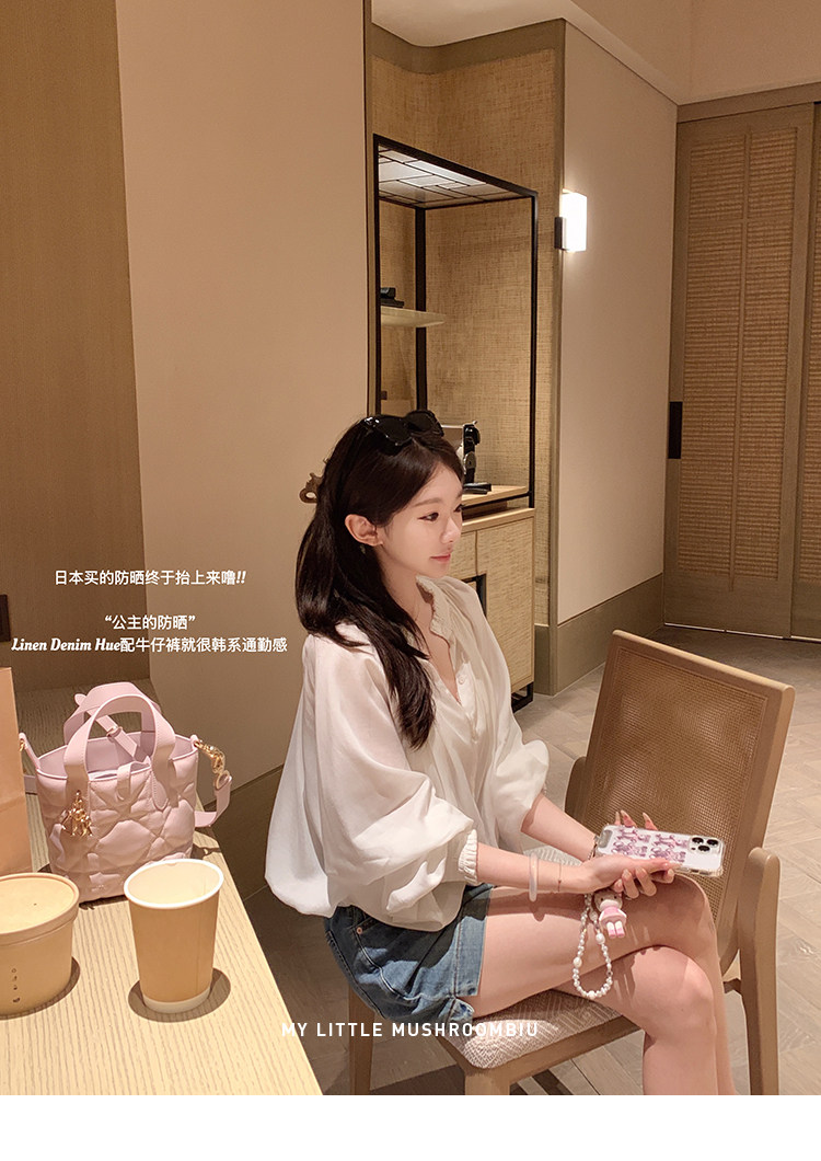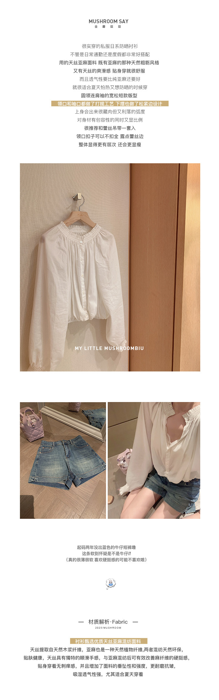金蘑菇菇 公主的防晒 / 天丝亚麻防晒衬衫与牛仔小短裤