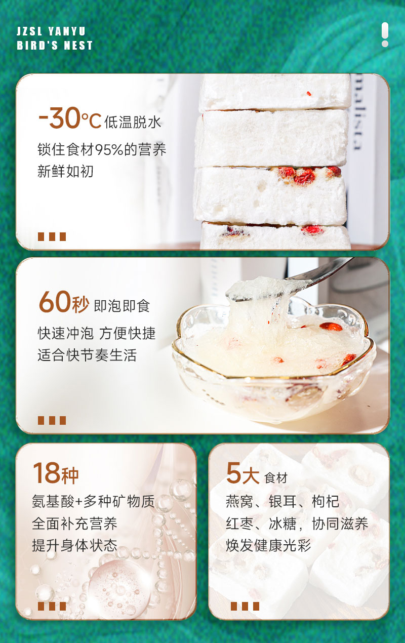 江中食疗颜羽燕窝冻干银耳羹免煮冲泡即食红枣枸杞速食代餐 15g*6袋/盒保质期至2026年12月(可用储值支付)
