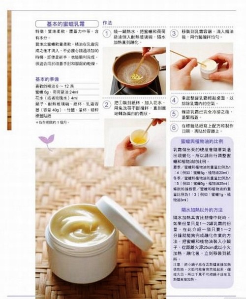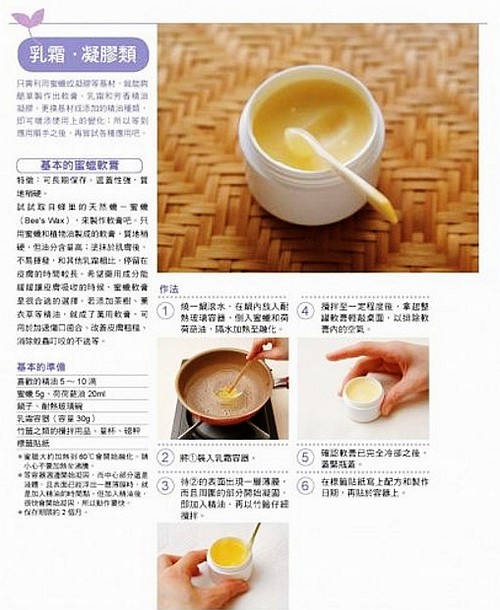 馬鬱蘭4滴、薰衣草5滴、檸檬草4滴、蜜蠟乳霜30g。