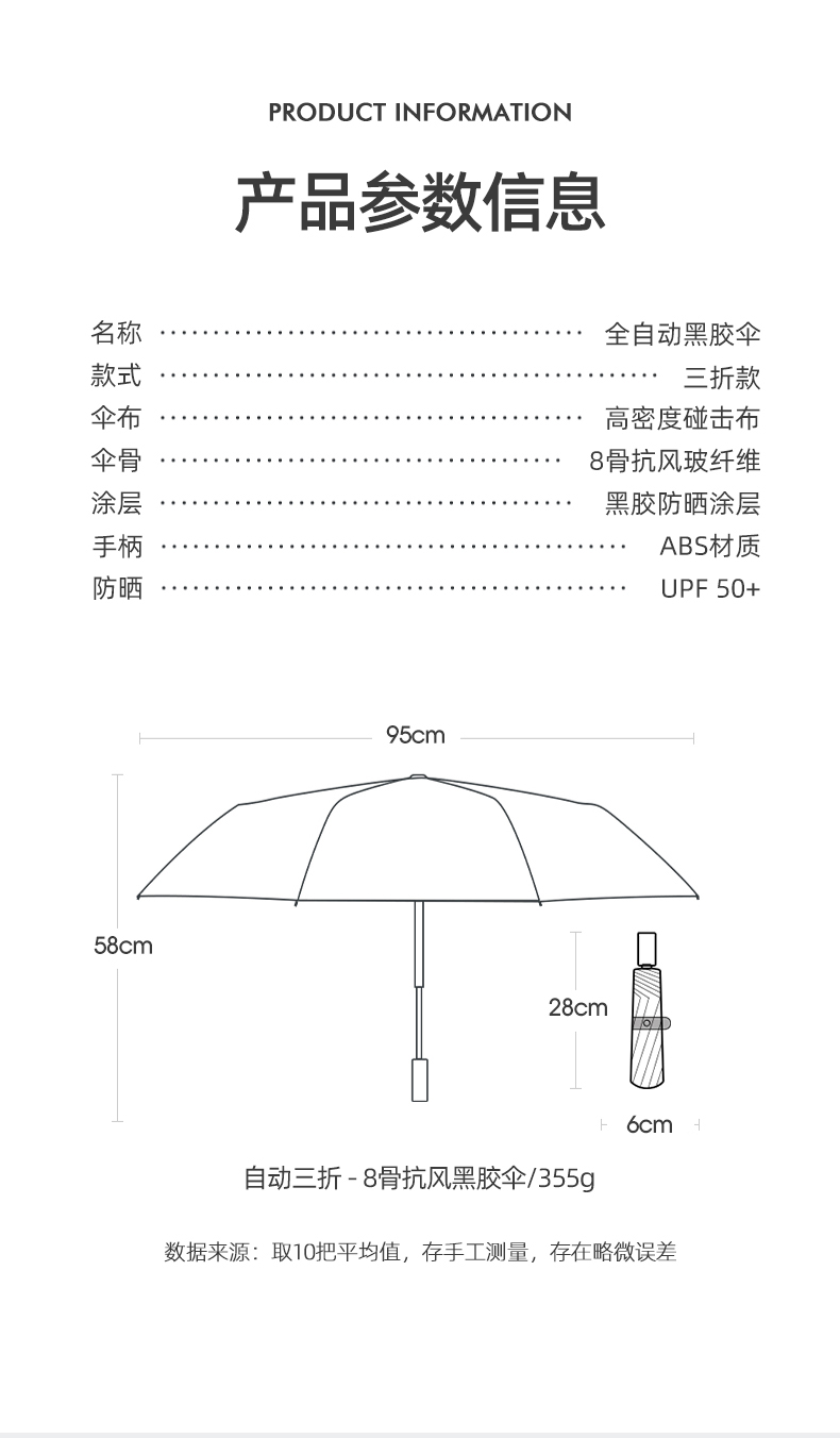 日本FIYU 一键开合,黑胶防晒抗紫外线 八骨强抗风 使用更存便