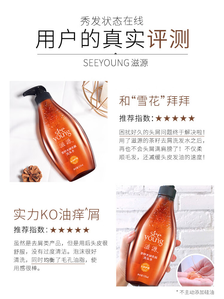 滋源茶籽水润去屑洗头水(中干性) 535ml