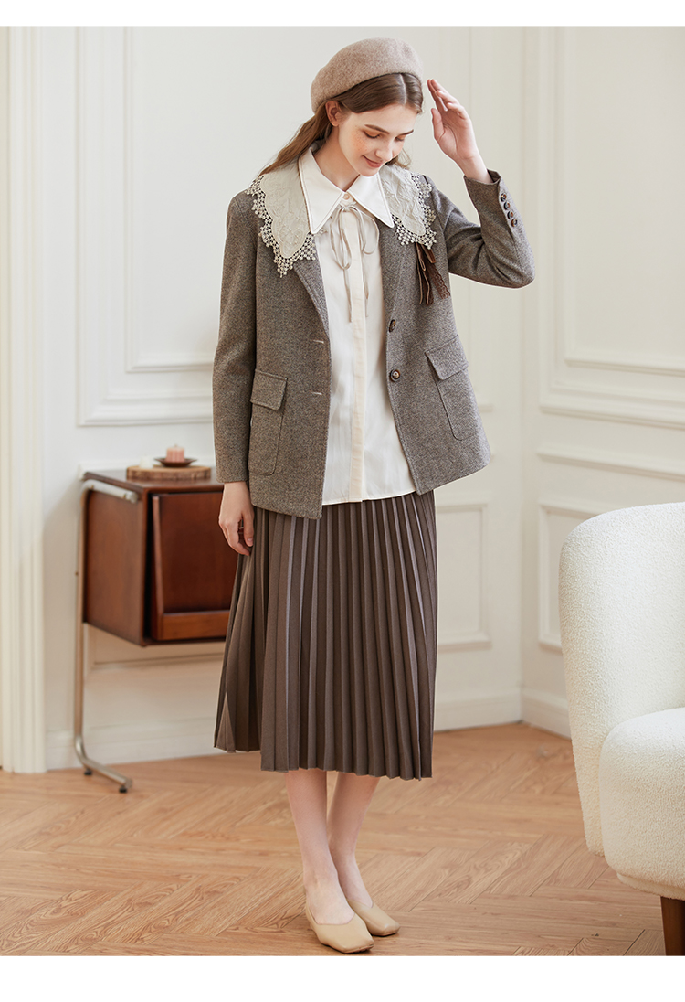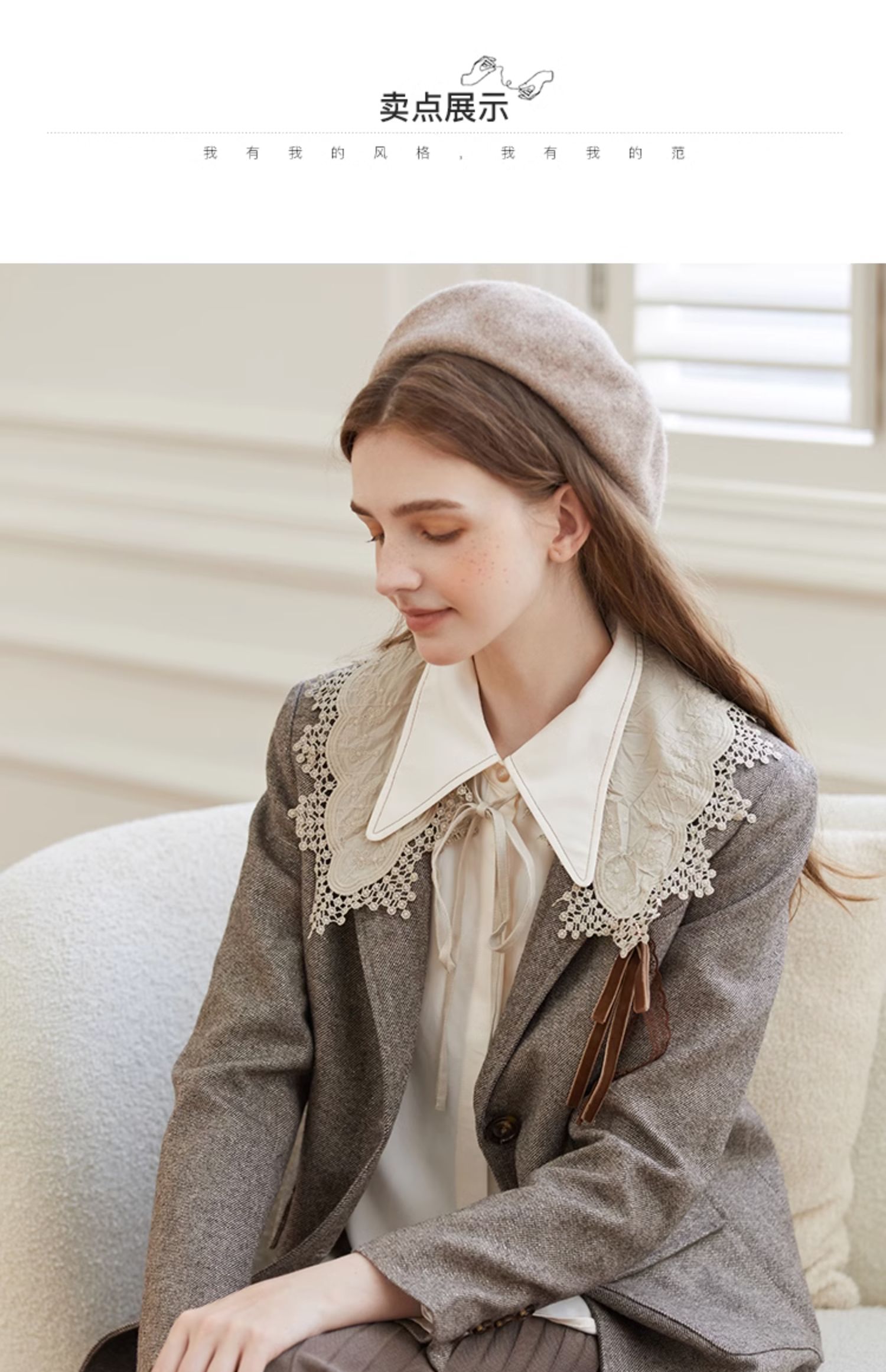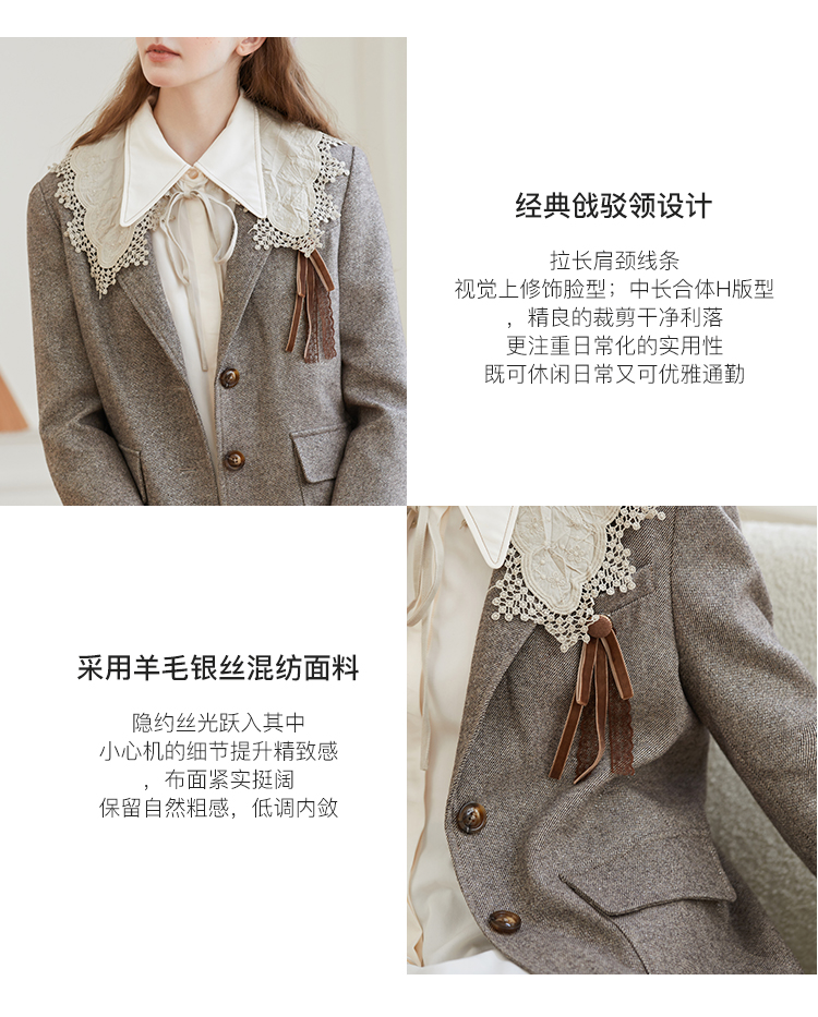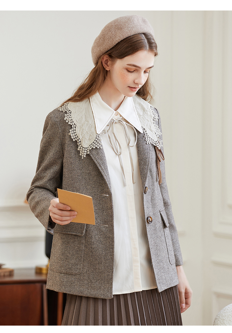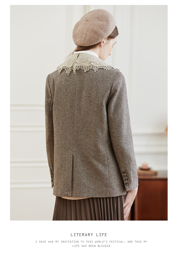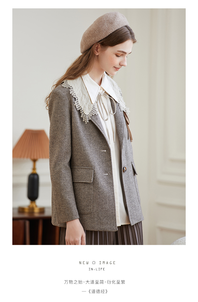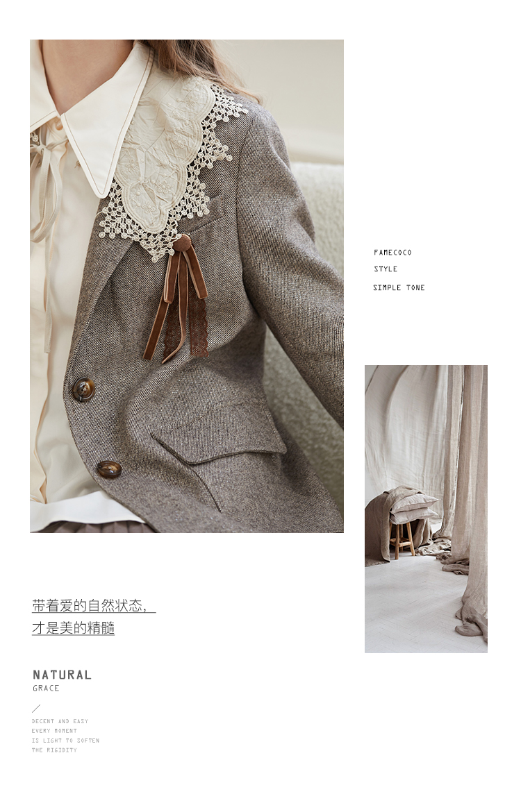 Famecoco范可儿羊毛职业西装女士秋季正肩直筒纯色小西服外套F225AW022