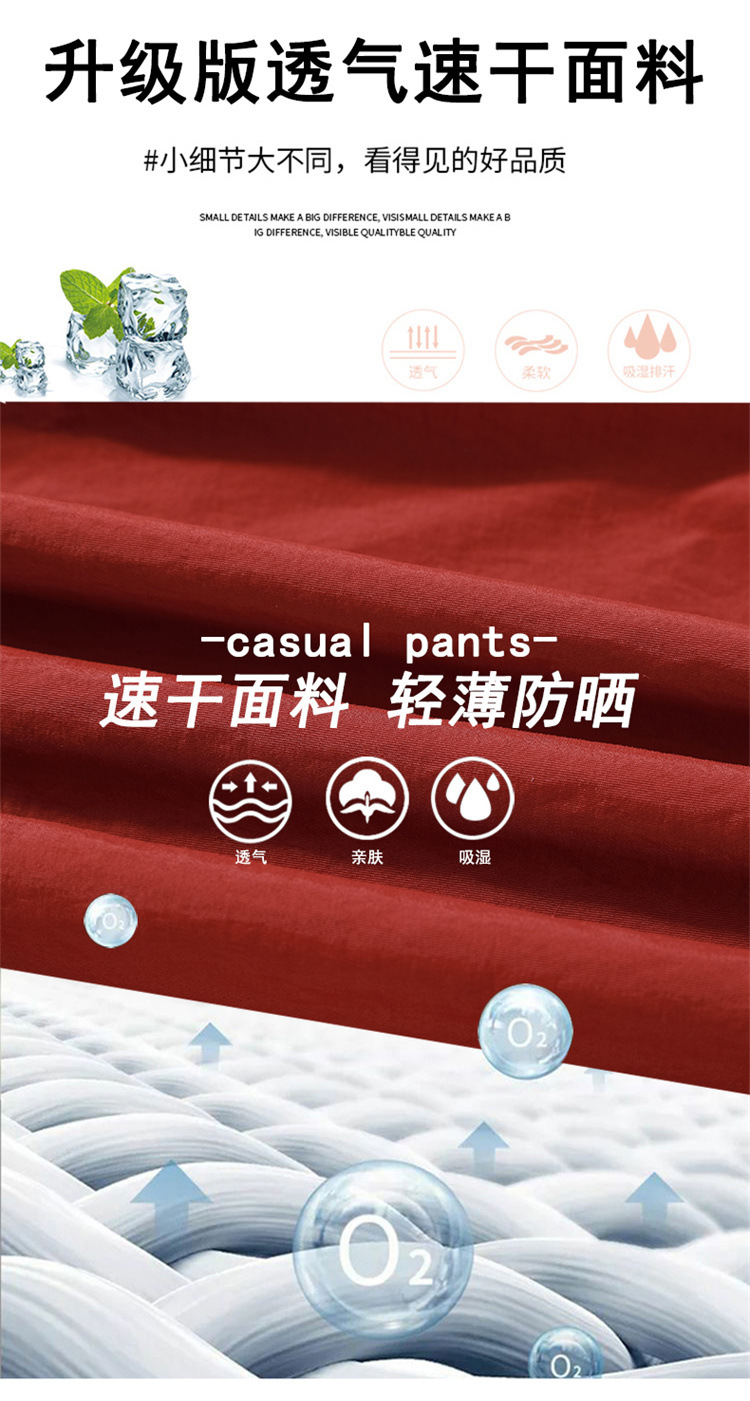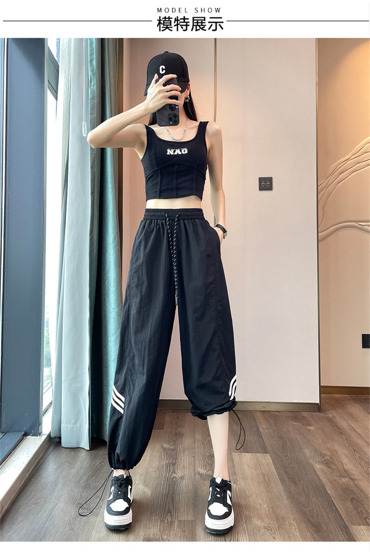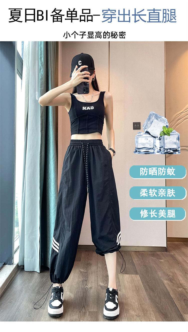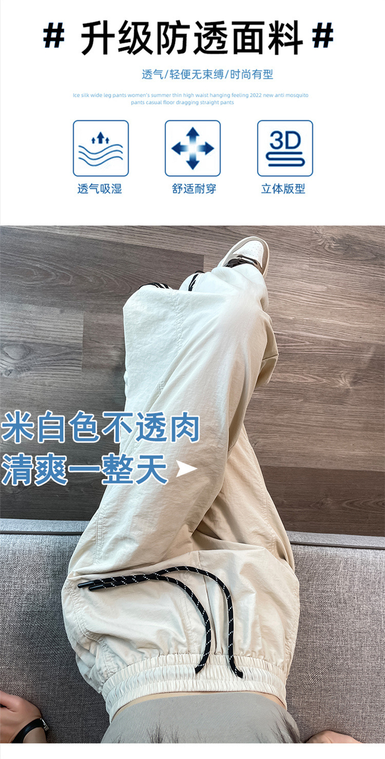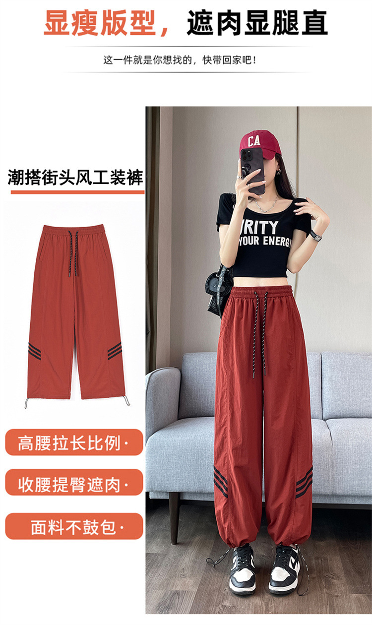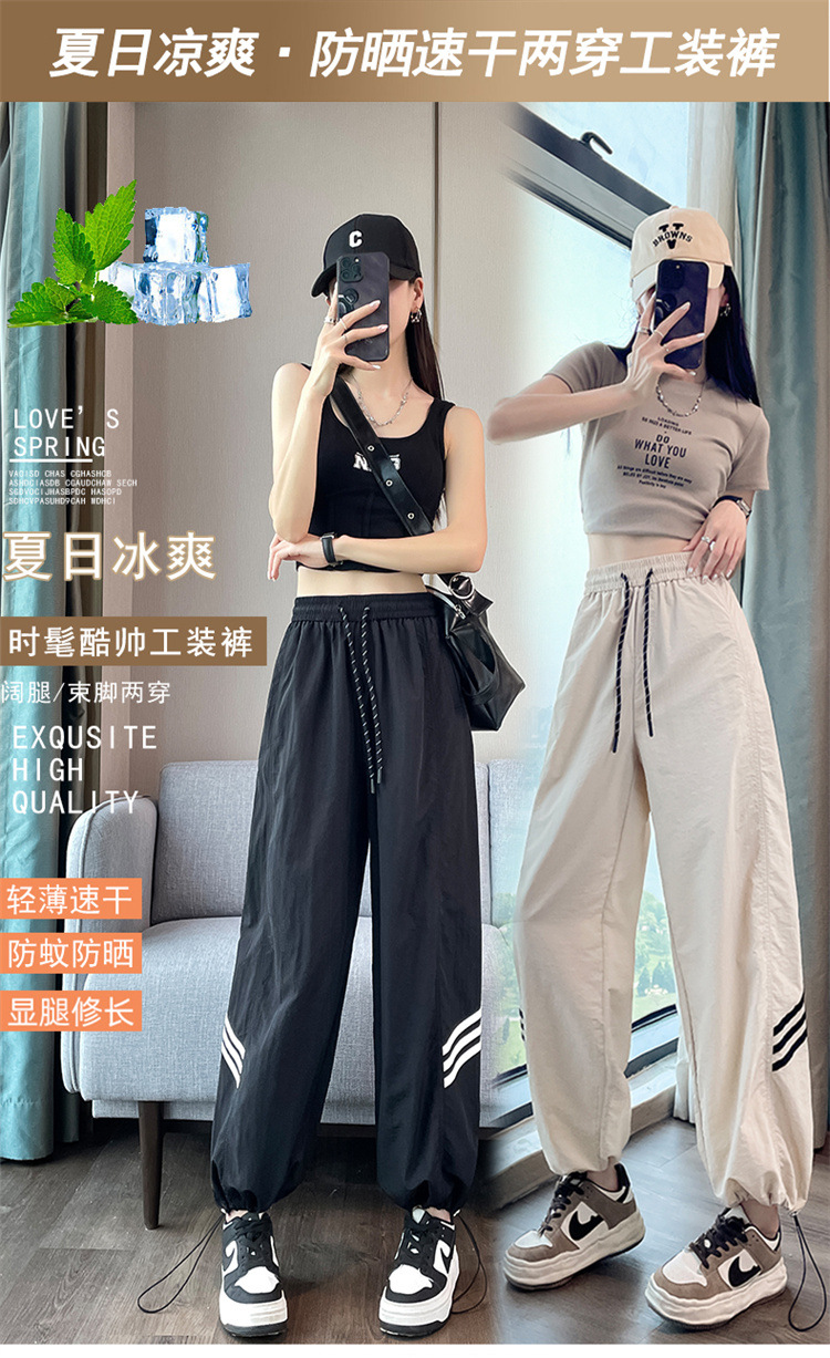 【美式拼接工装裤】夏季凉感速干薄款抽绳可两穿束脚阔腿高腰休闲运动裤